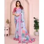 Blue Color Linen Cotton Fabric Festive Looks Printed Saree