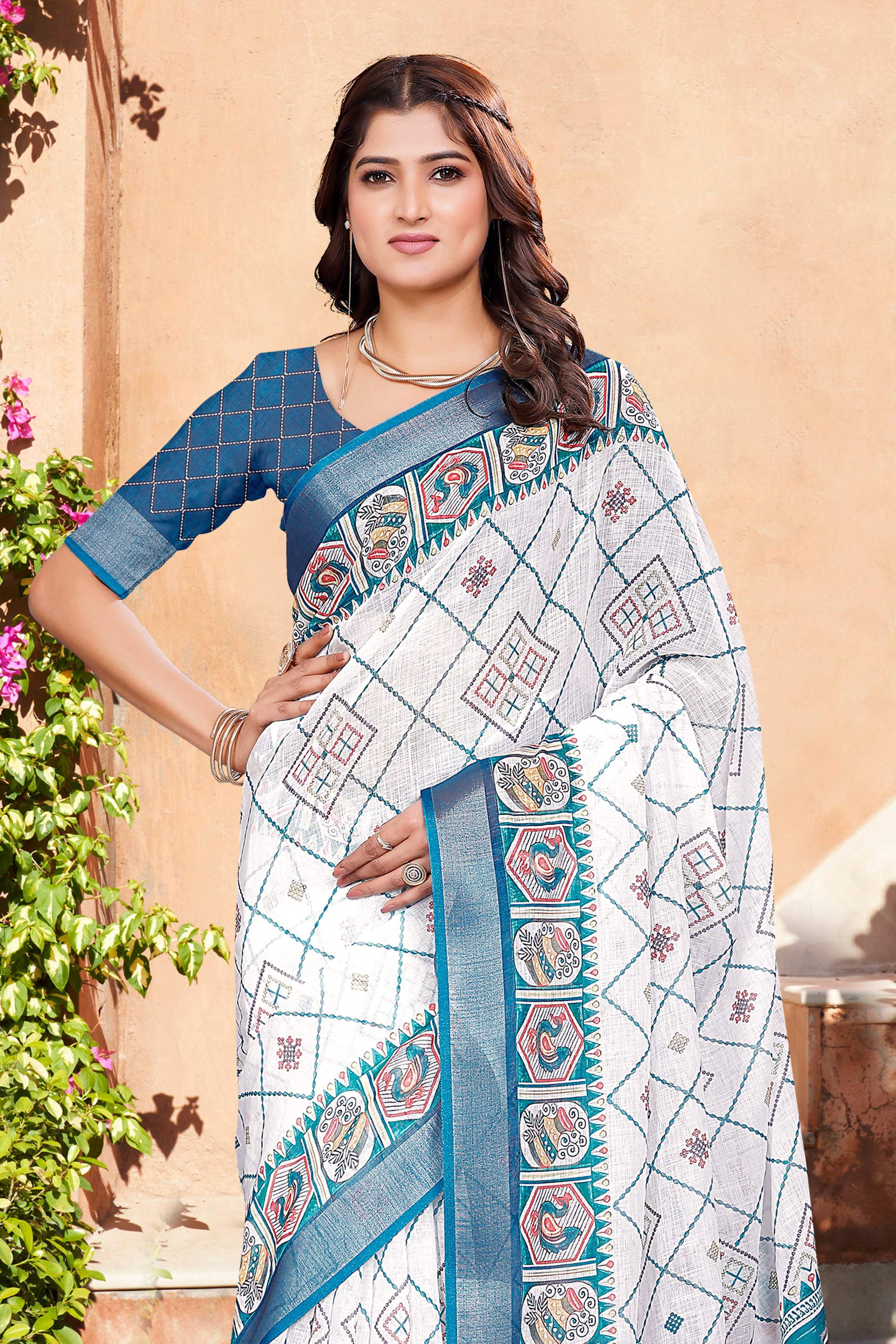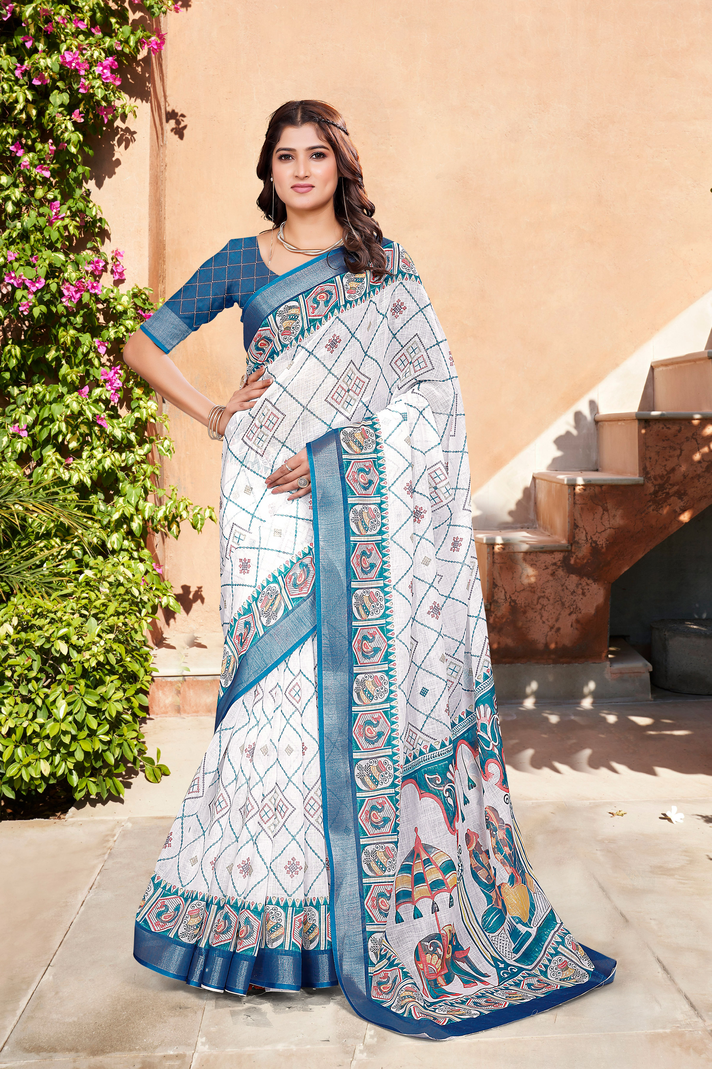 Garb These Fastive Saree in Fine Colored.These Saree Are Linen Cotton And Blouse is Fabricated On Linen Cotton Pair.Its Beautified With Wevon Jari Border With Designer Digital Printed.