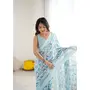 Blue Color Moss Satin Patta Fabric Designer Printed Ethnic Partywear Saree