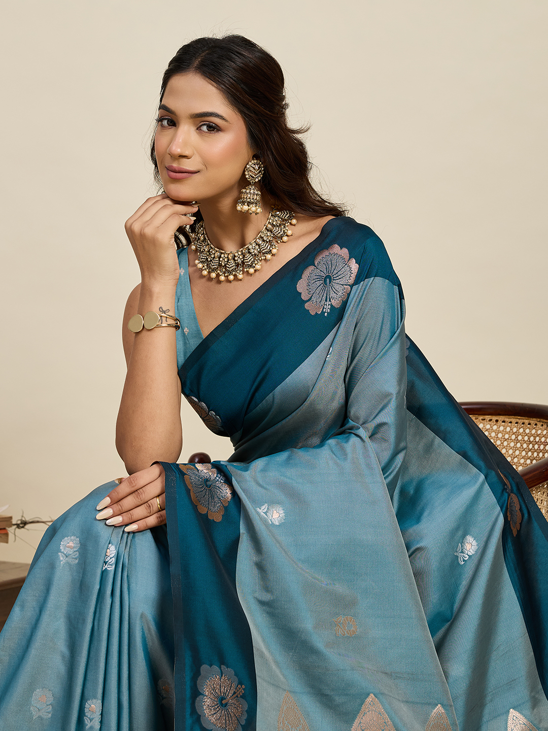 Blue Color Soft Silk Fabric Woven Jari Designer Ethnic Indian Saree