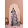 Blue Color Tussar Silk Designer Printed Saree With Woven Designer