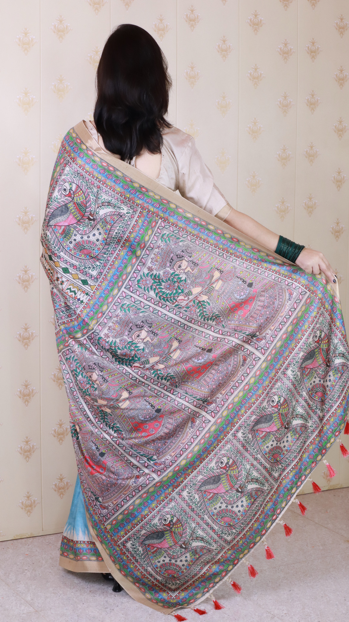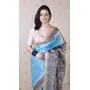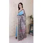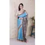 Blue Color Woven Jari Border Designer Madhubani Digital Printed Ethnic Tussar Silk Saree