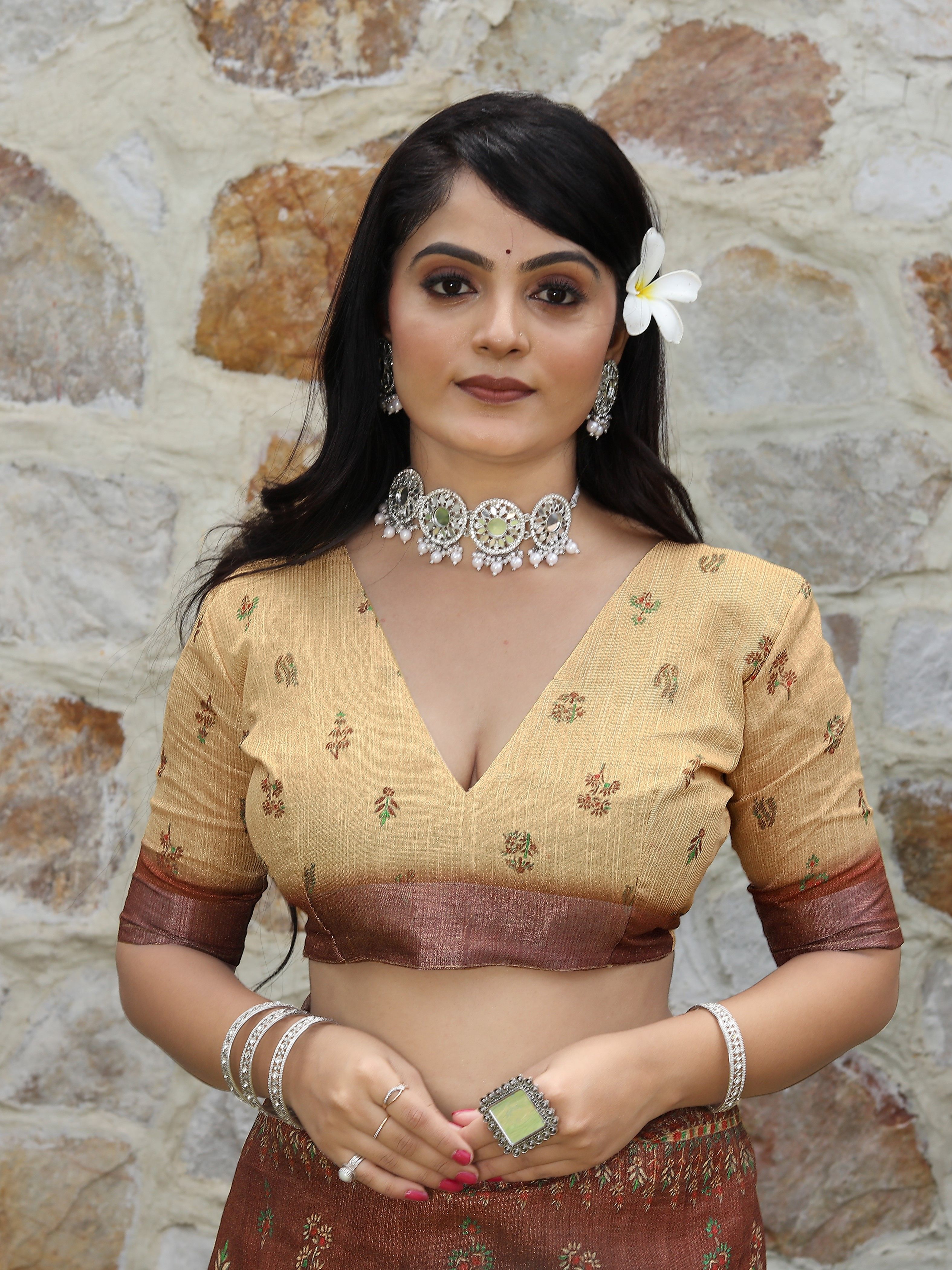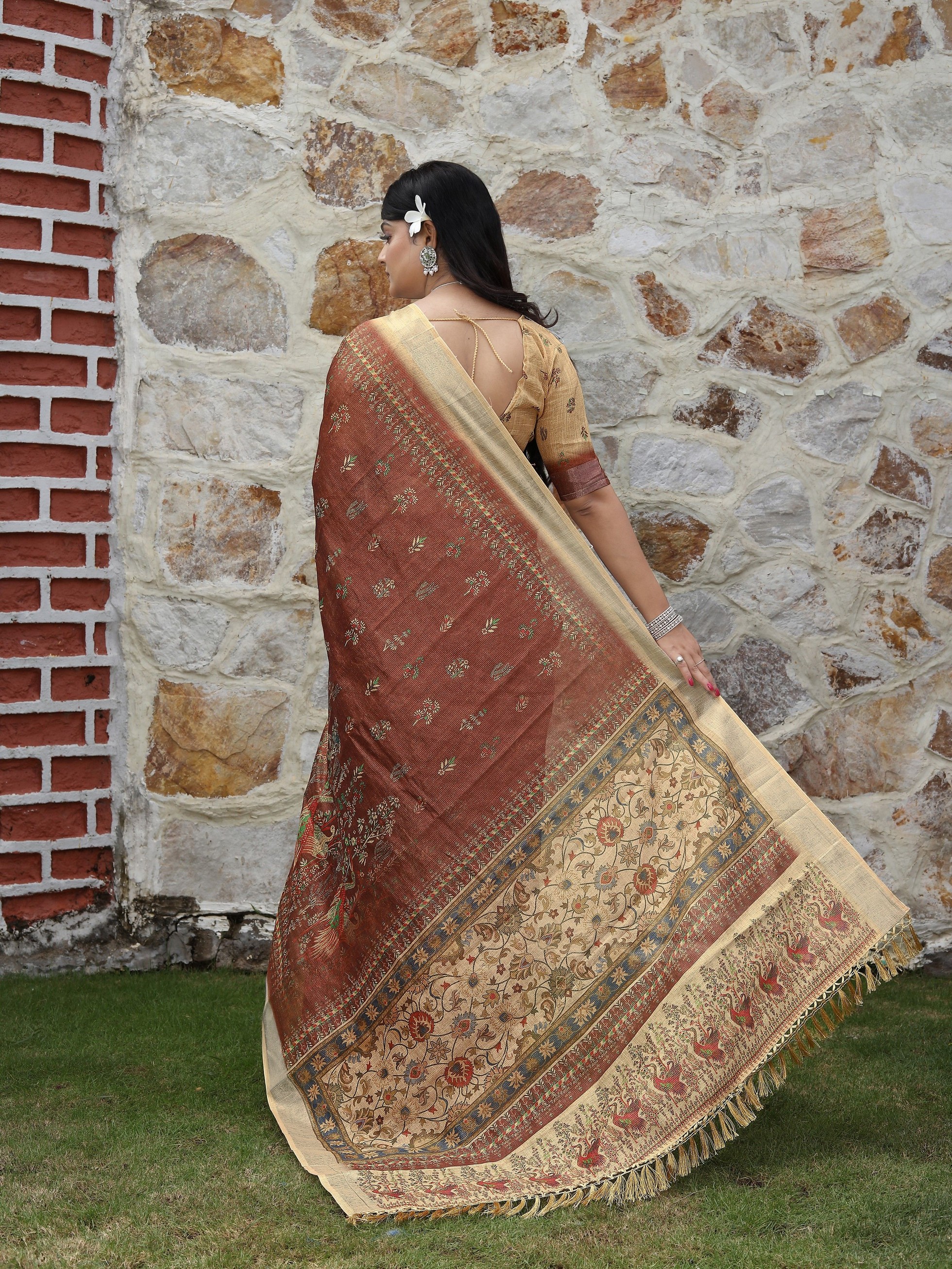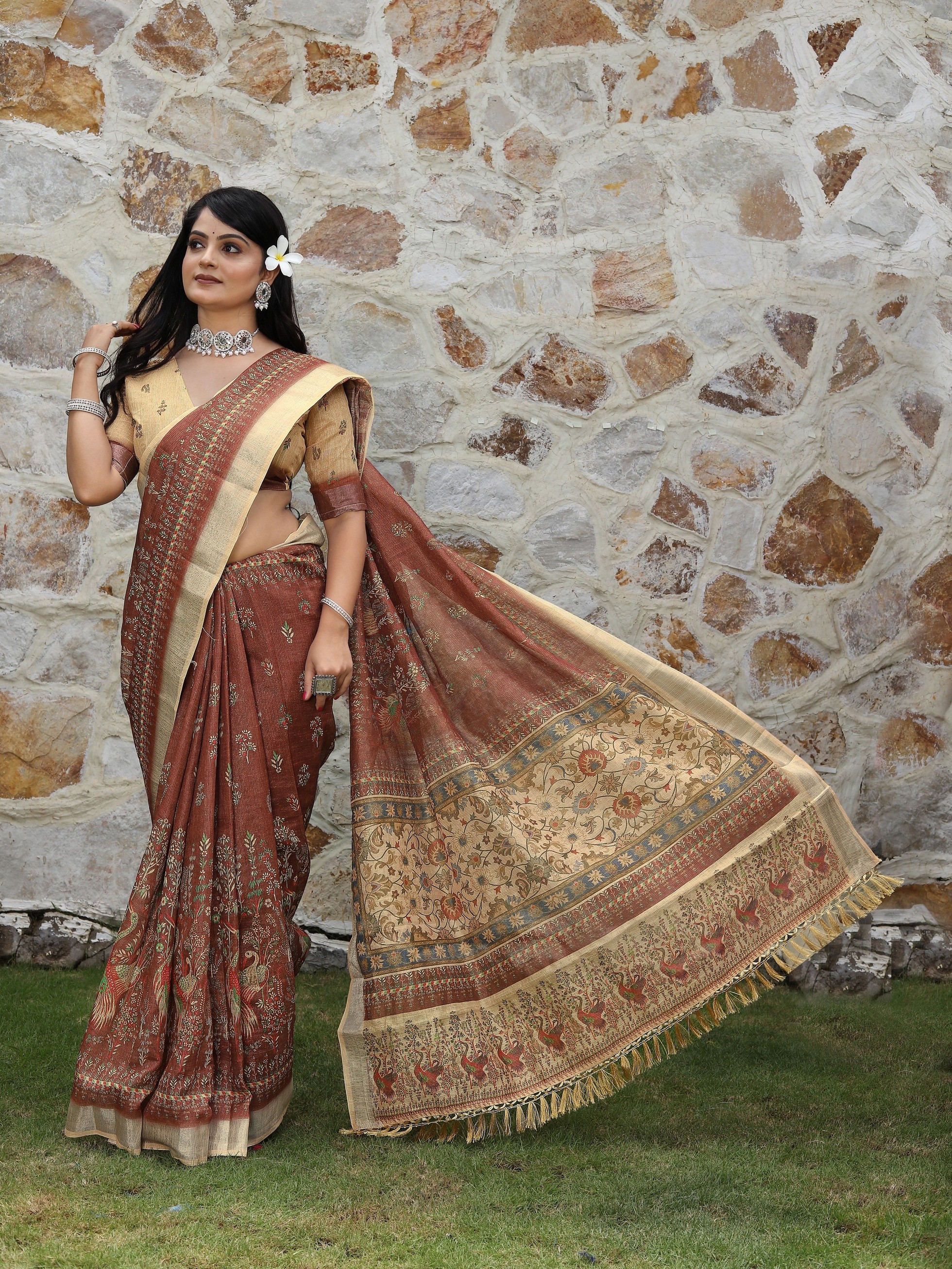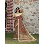 Brown Color Cotton Shimmer Fabric Designer Printed Ethnic Girlie Saree