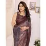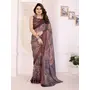 Brown Color Moss Satin Patta Fabric Designer Printed Saree