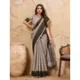 Charcoal Grey color Linen Based Fabric Ethnic Woven Designer Ceremonial Saree