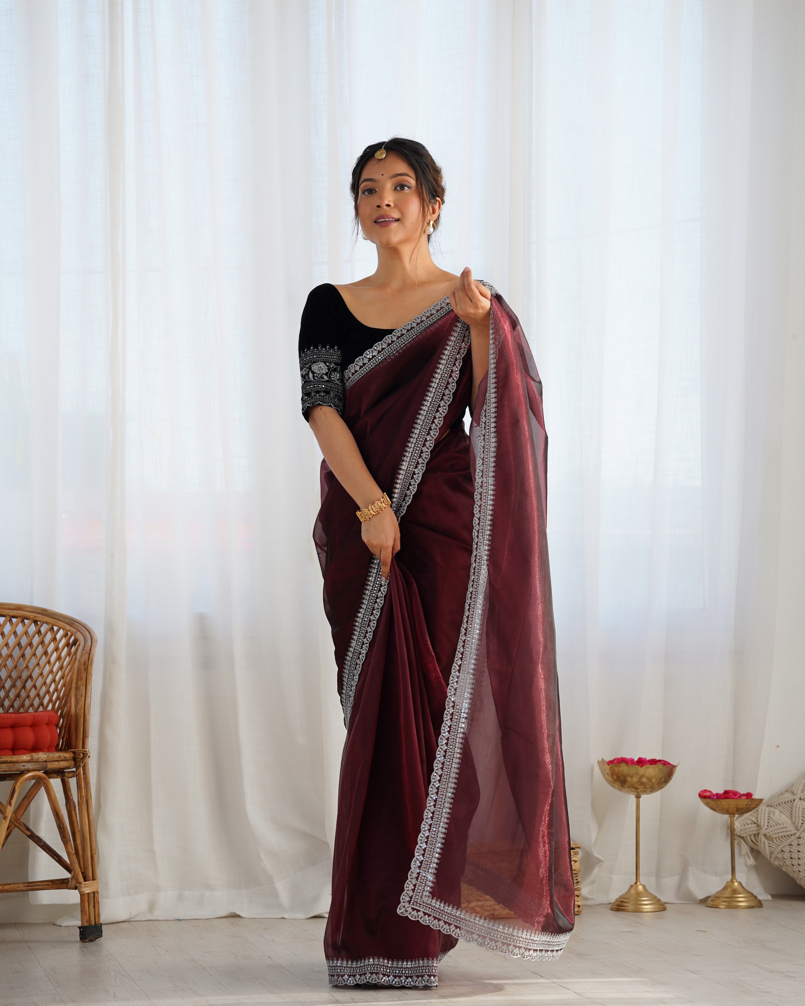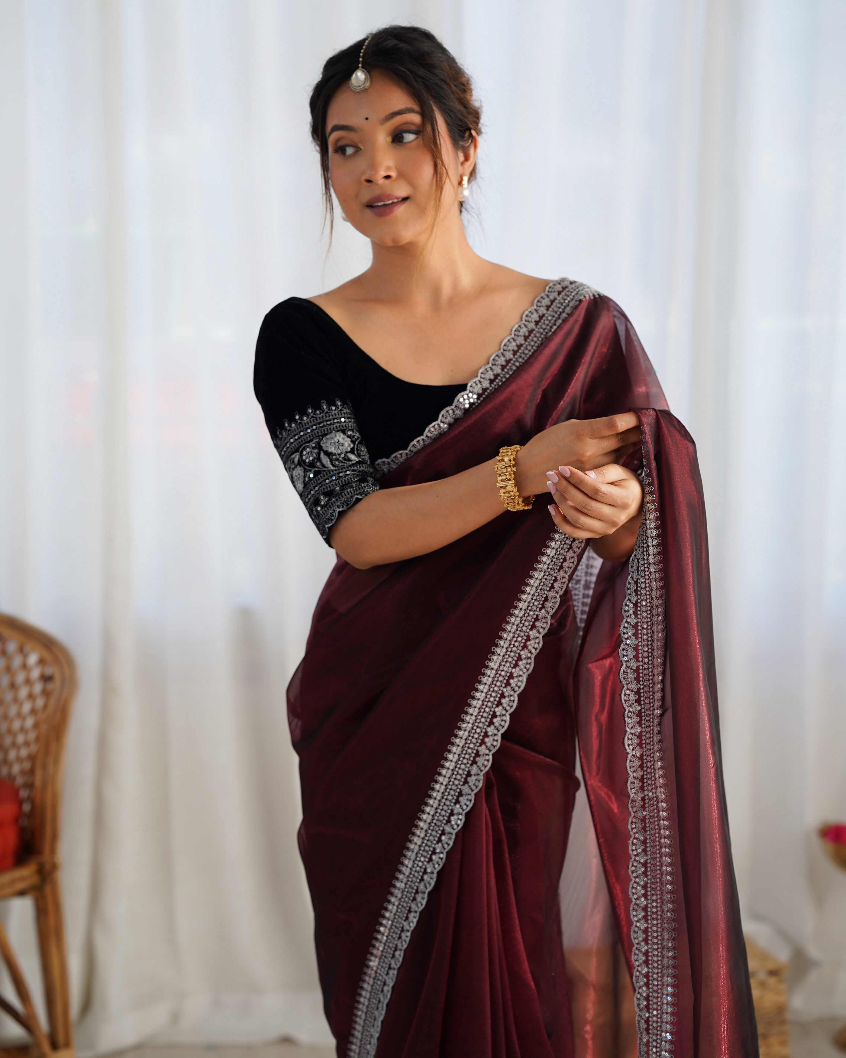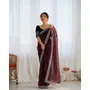 Coffee Color Twill Net Fabric Glamorous Bollywood Style Sequins Work Saree