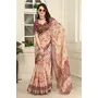 Cream Color Linen Cotton Fabric Beautiful Printed Saree