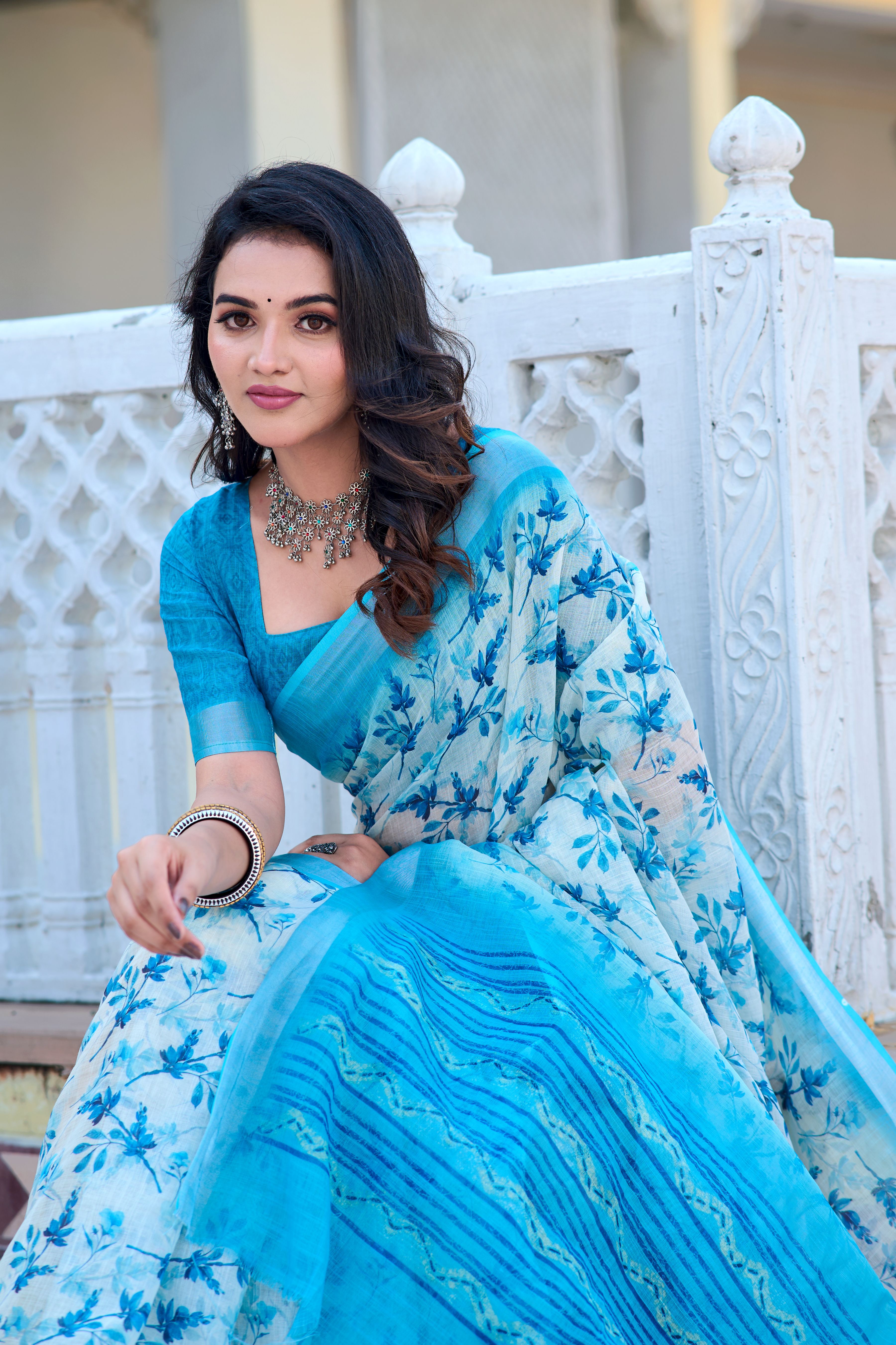 Garb These Festive Saree in Fine Colored.These Saree Are Linen Cotton And Blouse is Fabricated On Linen Cotton Pair.Its Beautified With Woven Jari Border With Designer Digital Printed.