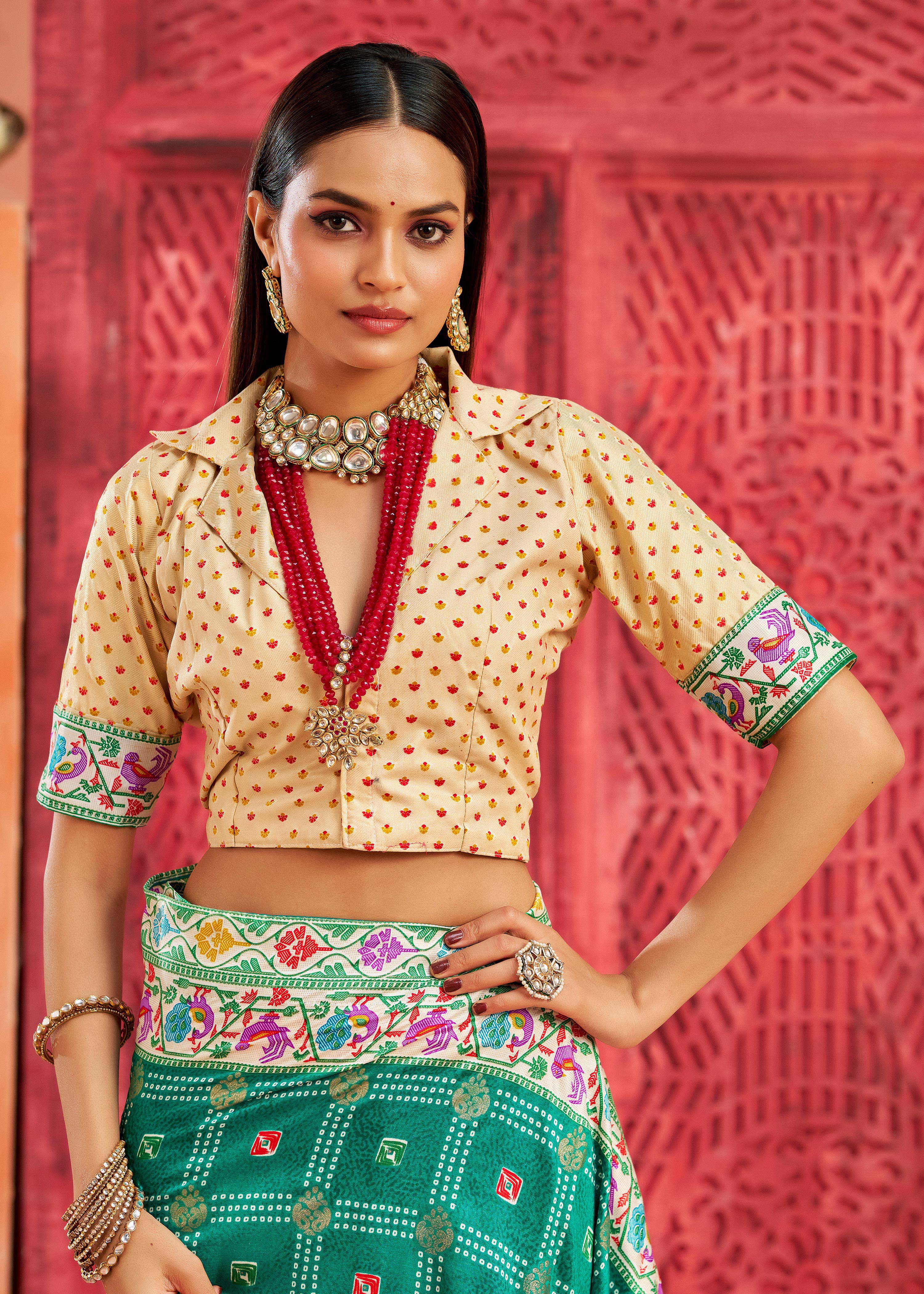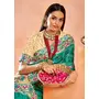 Firozi Color Velvet Tussar Silk Fabric Partywear Saree With Paithani Pallu And Traditional Ghatchola Print