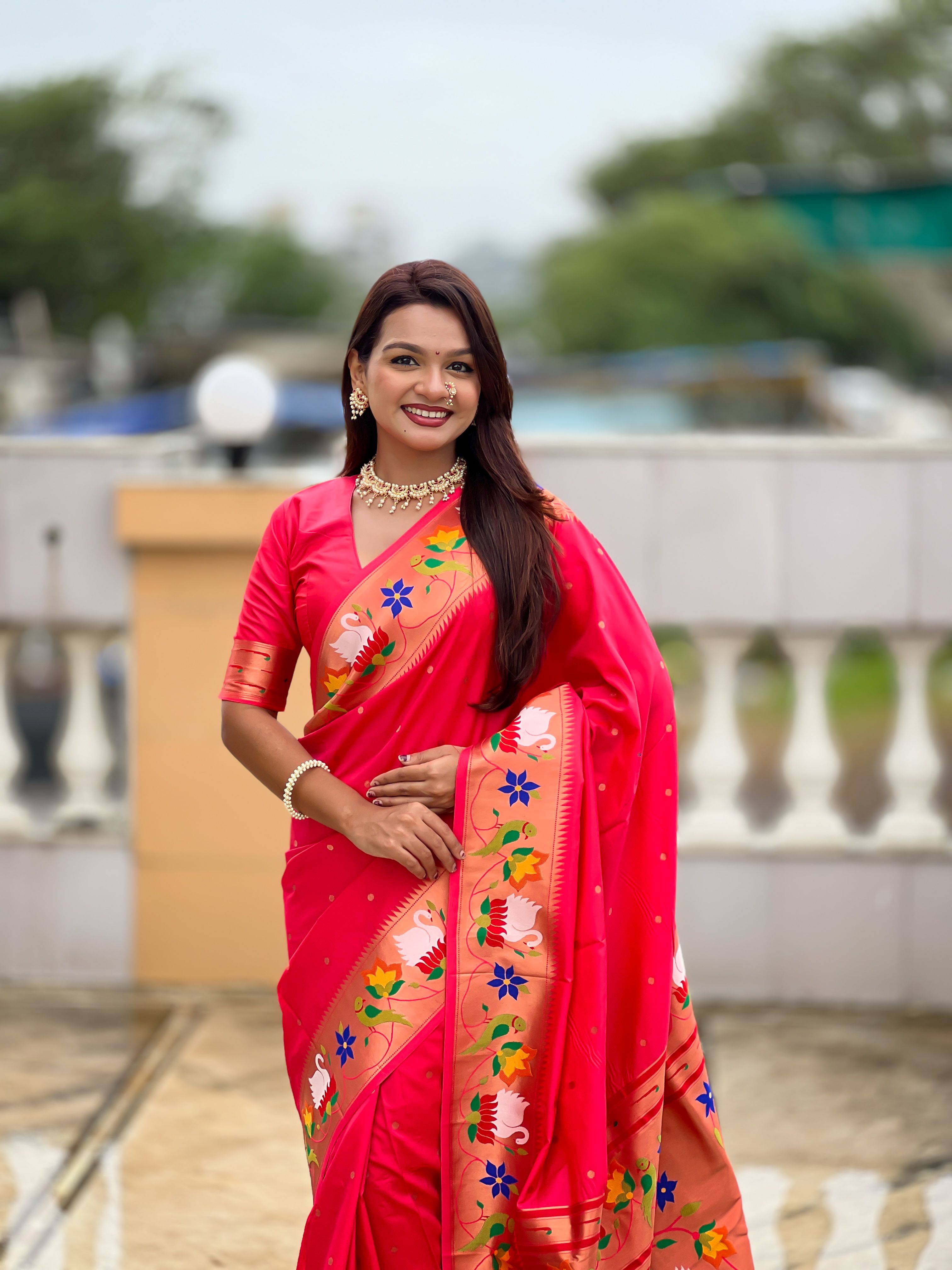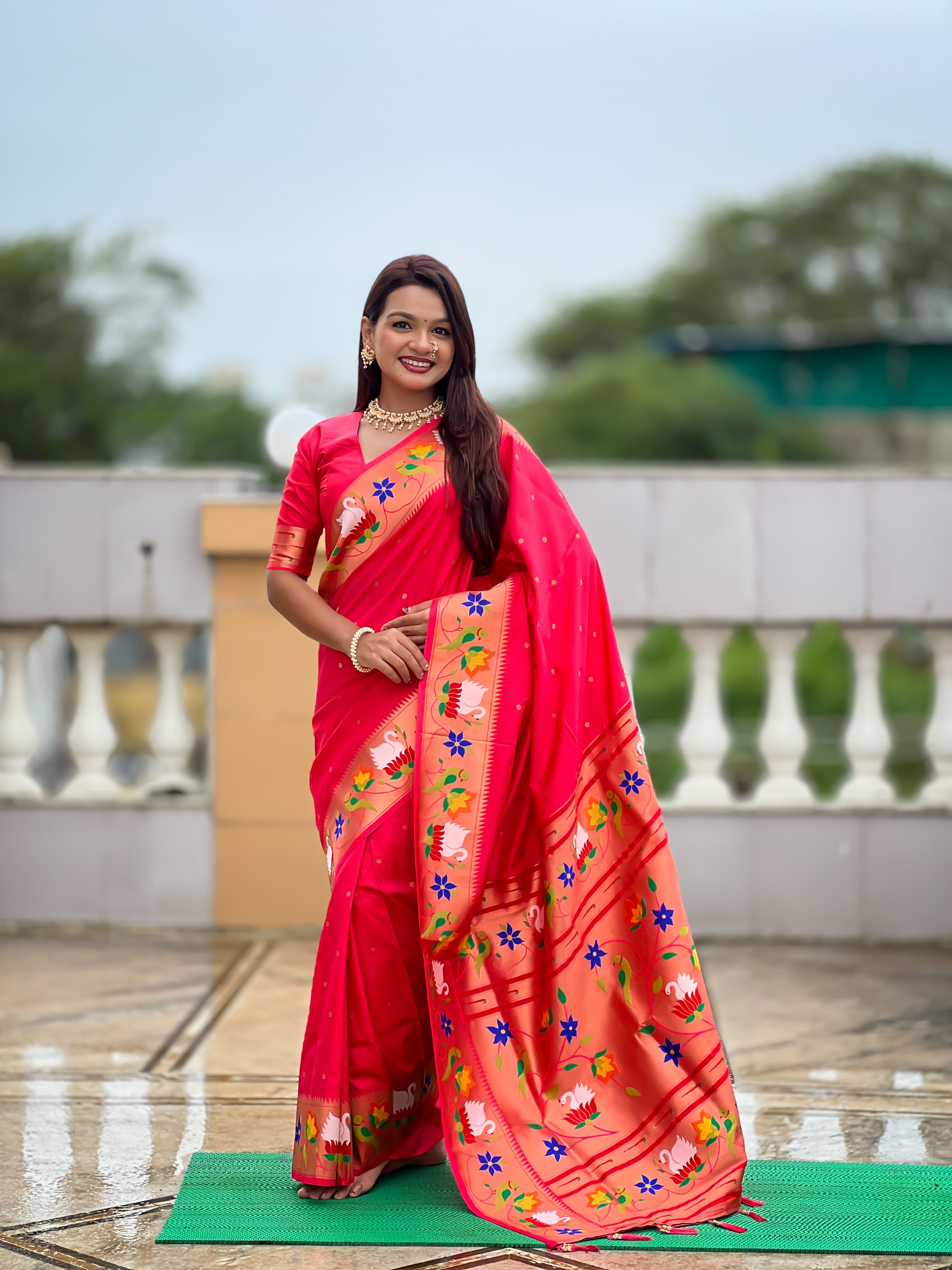Gajri Color Paithani Silk Woven Meenakari Jacquard Designer Heavy Wedding Special Saree