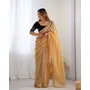 Gold Color Twill Net Fabric Glamorous Bollywood Style Sequins Work Saree