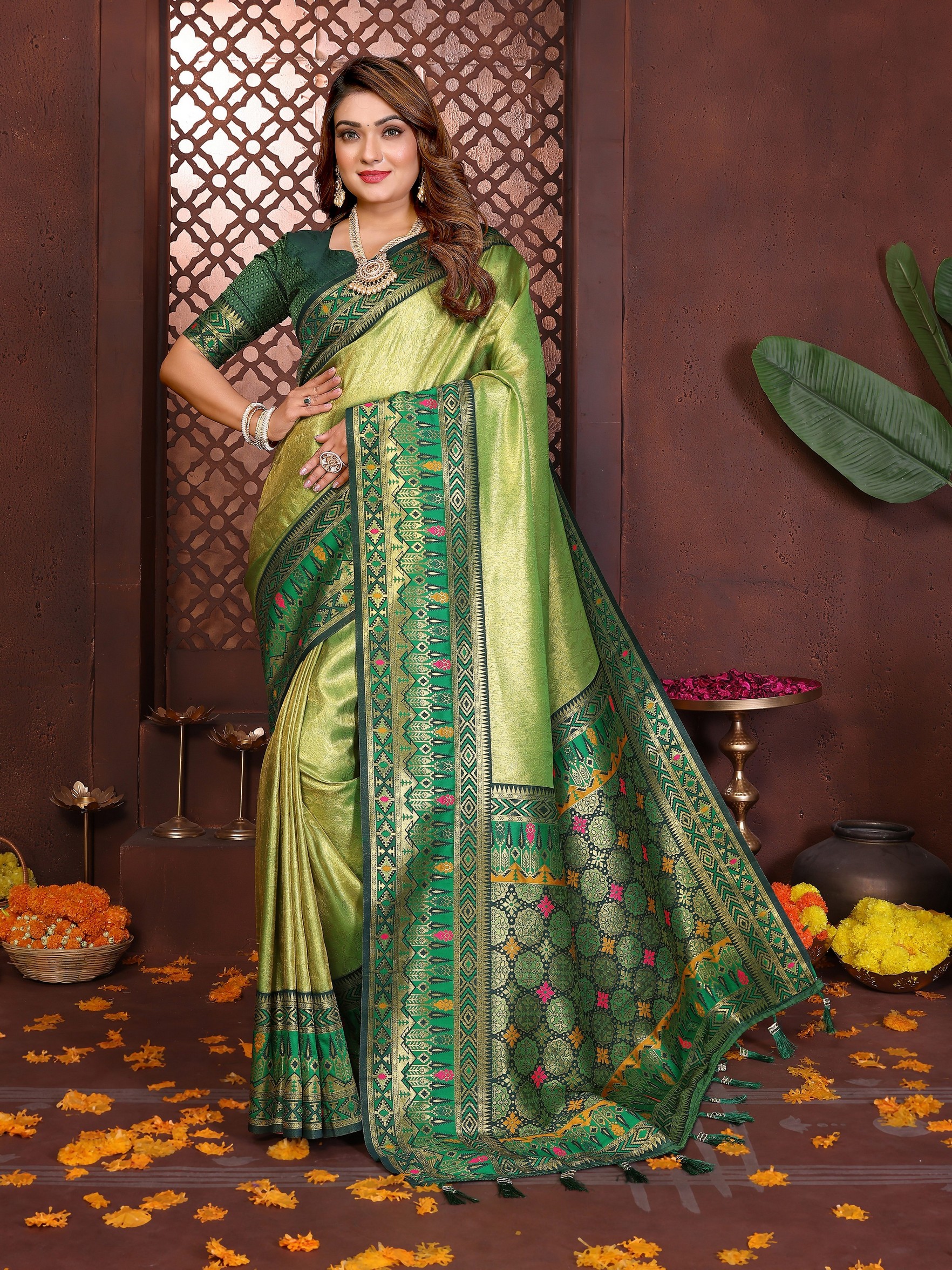 Green Color Banarasi Tissue Silk Fabric Woven Rich Paithani Designer Ethnic Partywear Saree