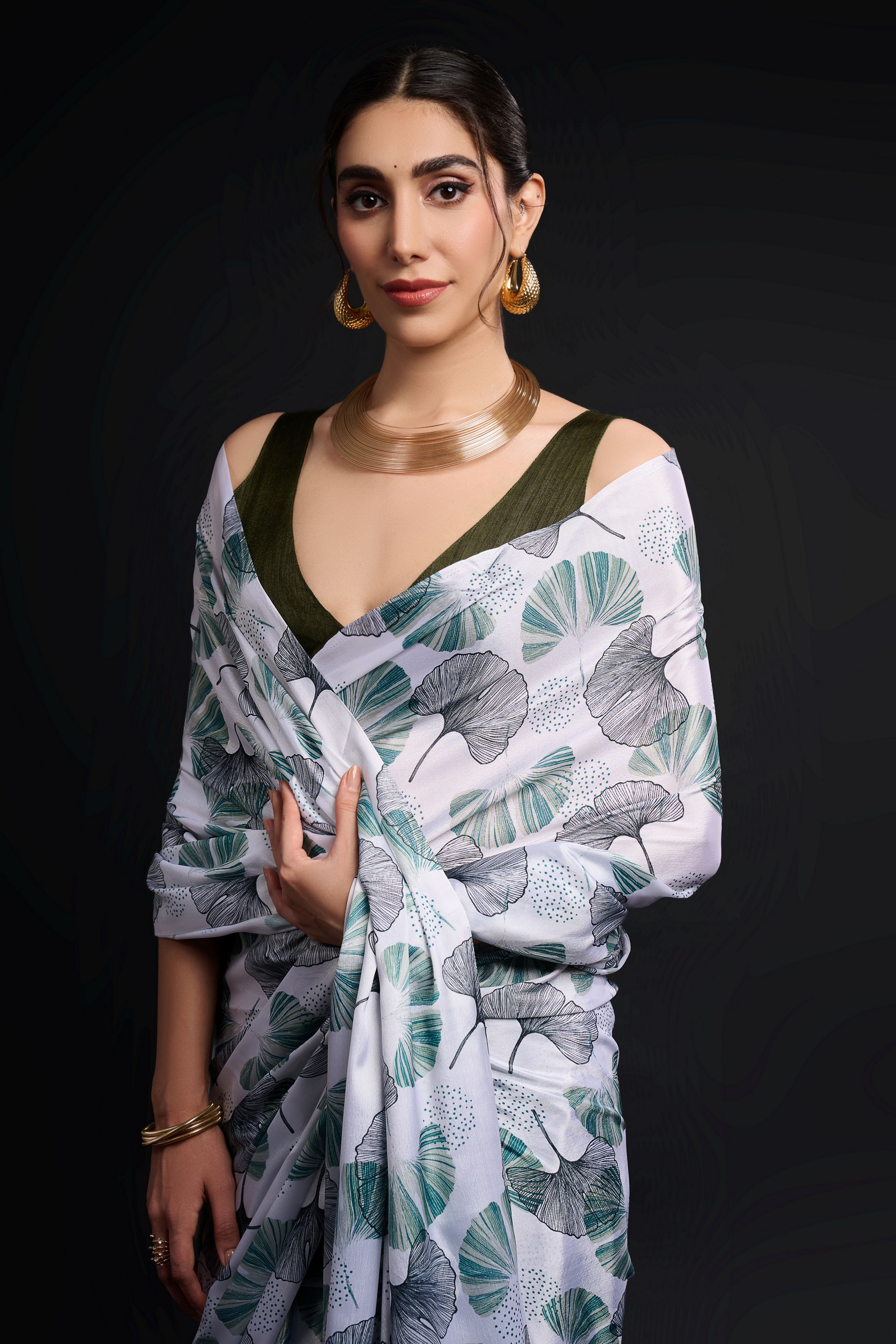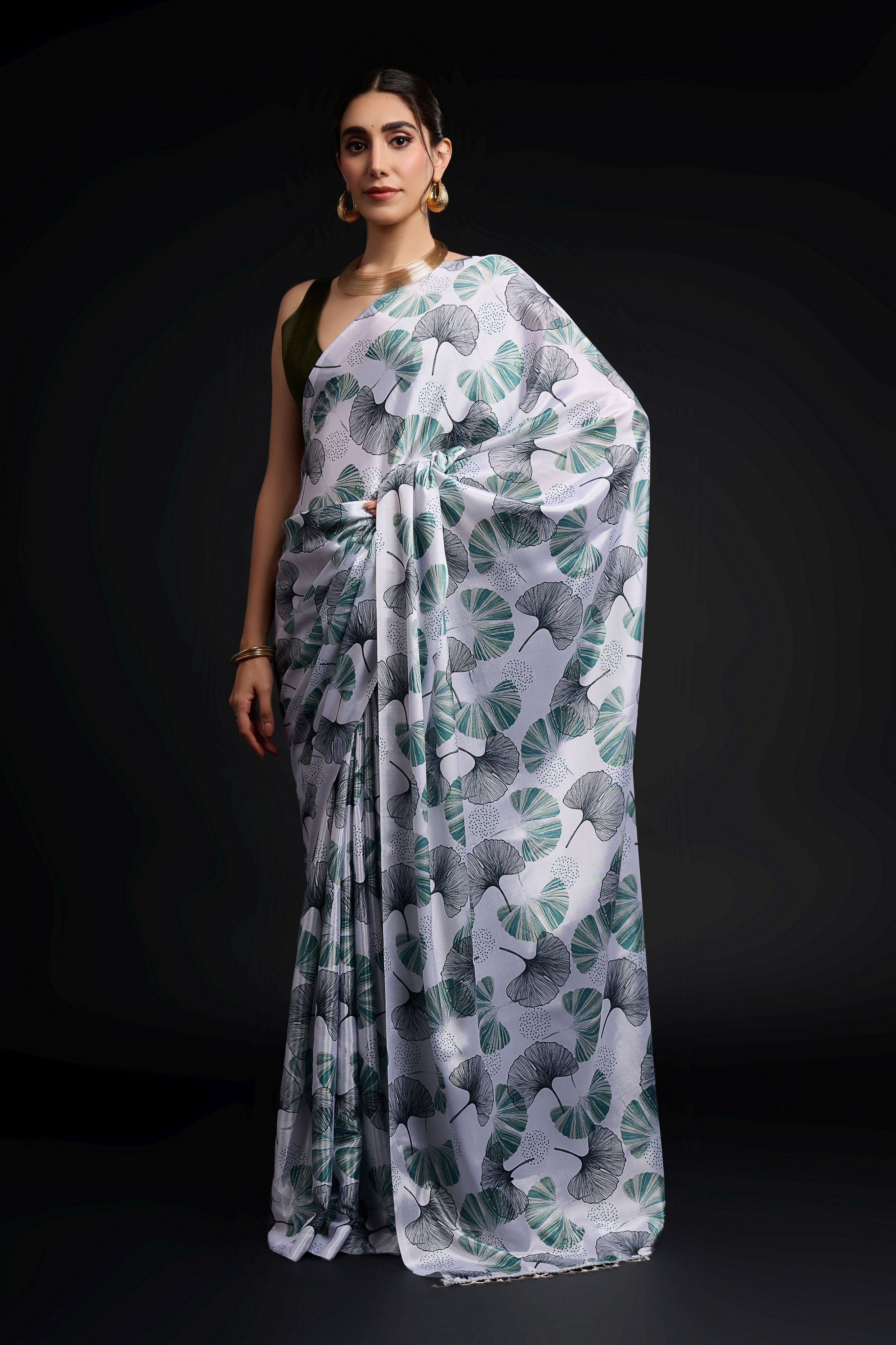 Green Color Chinon Fabric Designer Digital Printed Ready To Wear Saree