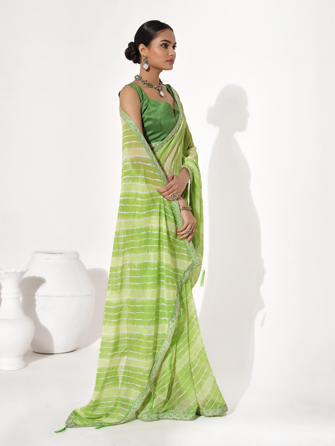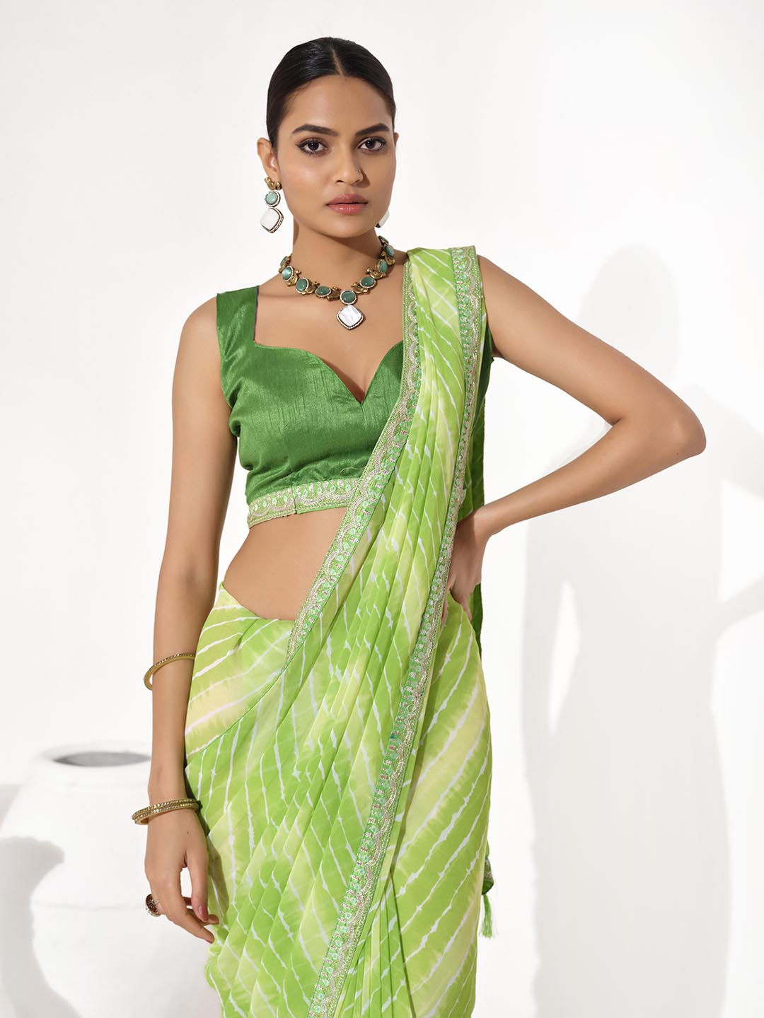 Green Color Georgette Fabric Beautiful Designer Printed Saree