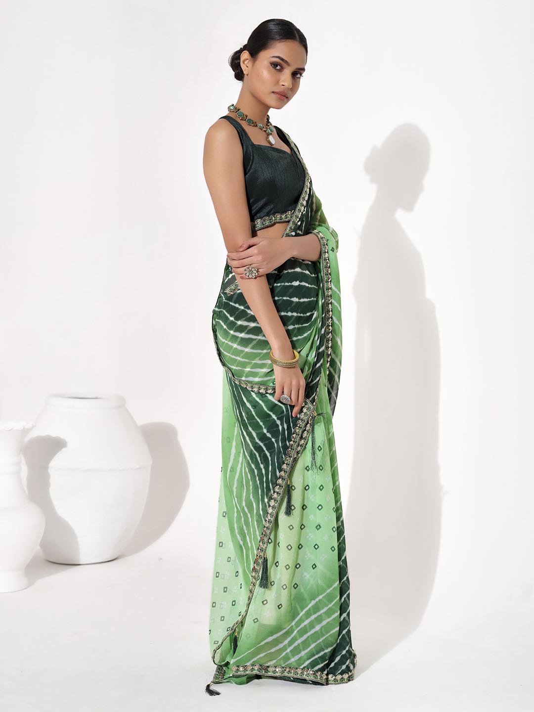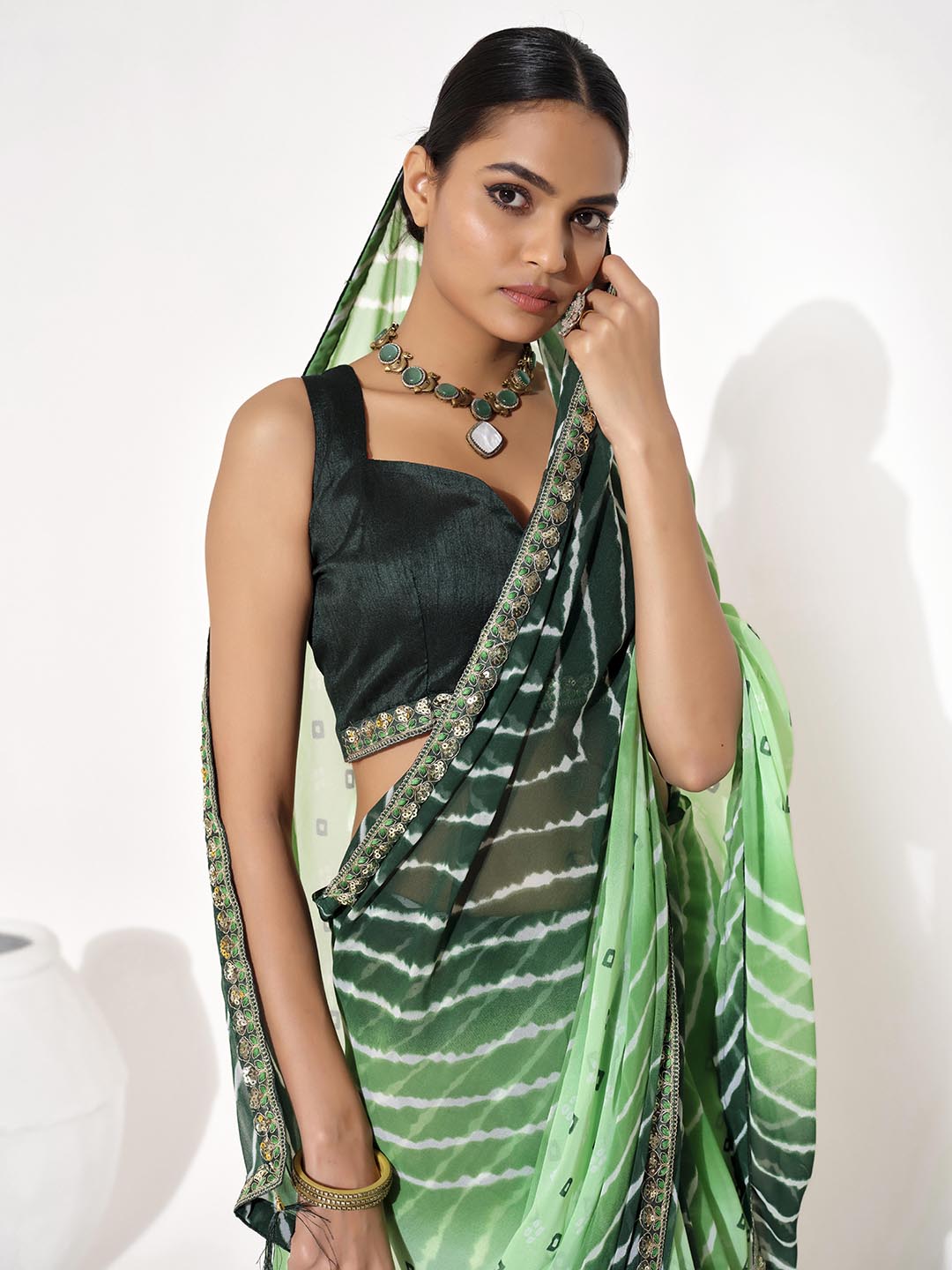Green Color Georgette Fabric Beautiful Designer Printed Saree