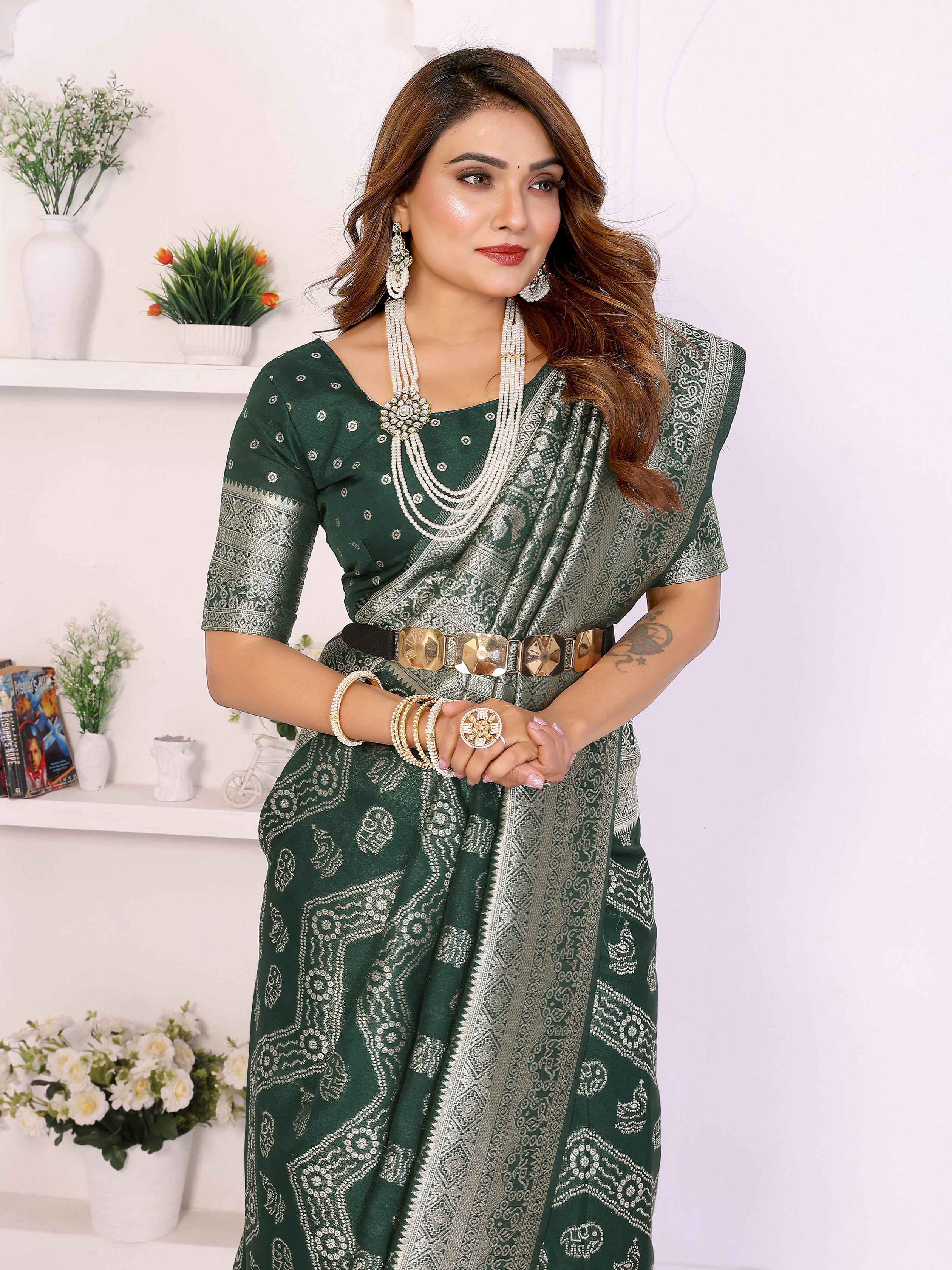 Green Color Georgette Silk Fabric Woven Laheriya Jari Designer Saree
