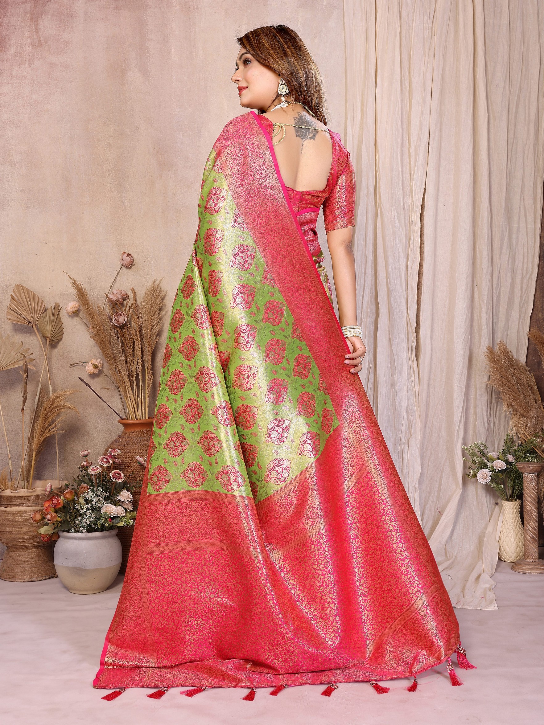 Green Color Heavy Rich Banarasi Tissue Silk For Ceremonial Traditional Looks