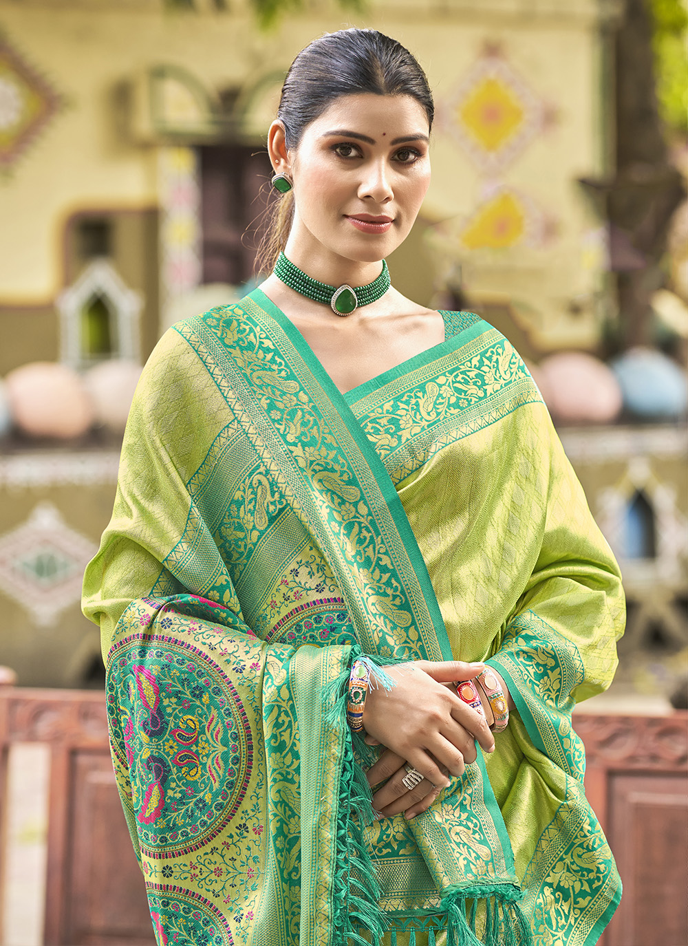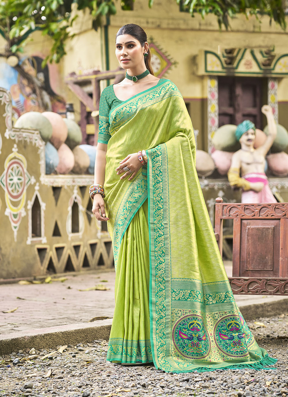 Green Color Kanjivaram Silk Fabric Designer Ethnic Festive Wear Saree