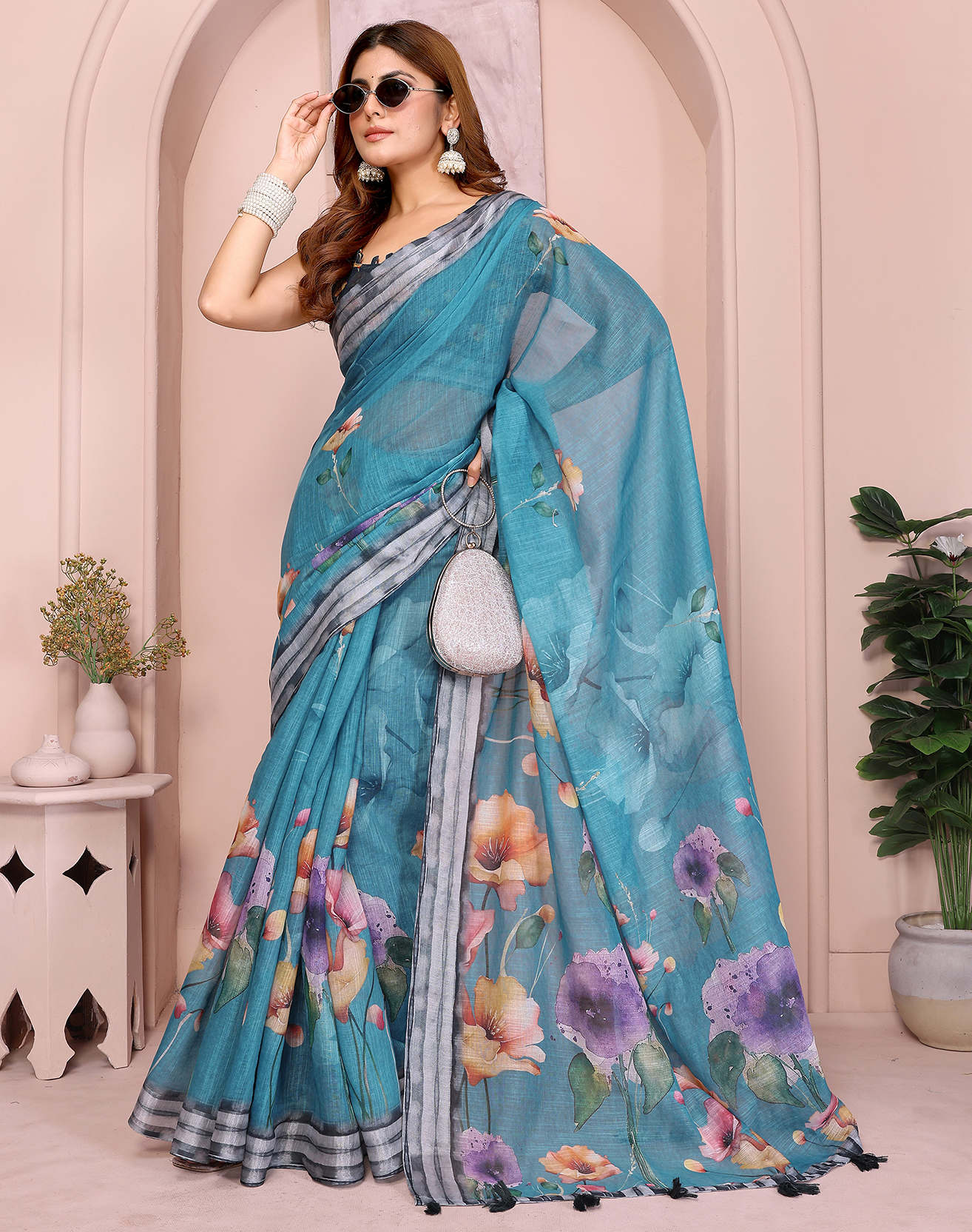 Looking These Party Wear Saree in Fine Colored.These Saree And Blouse is Fabricated On Linen Cotton.Its Beautified With Woven Silver Border Designer With Digital Printed.