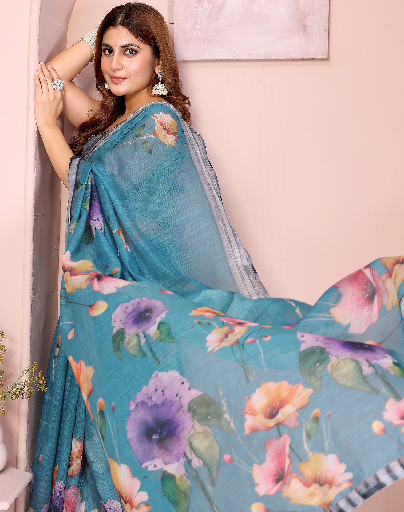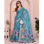 Green Color Linen Cotton Fabric Designer Printed Formal Looks Sophisticated Saree