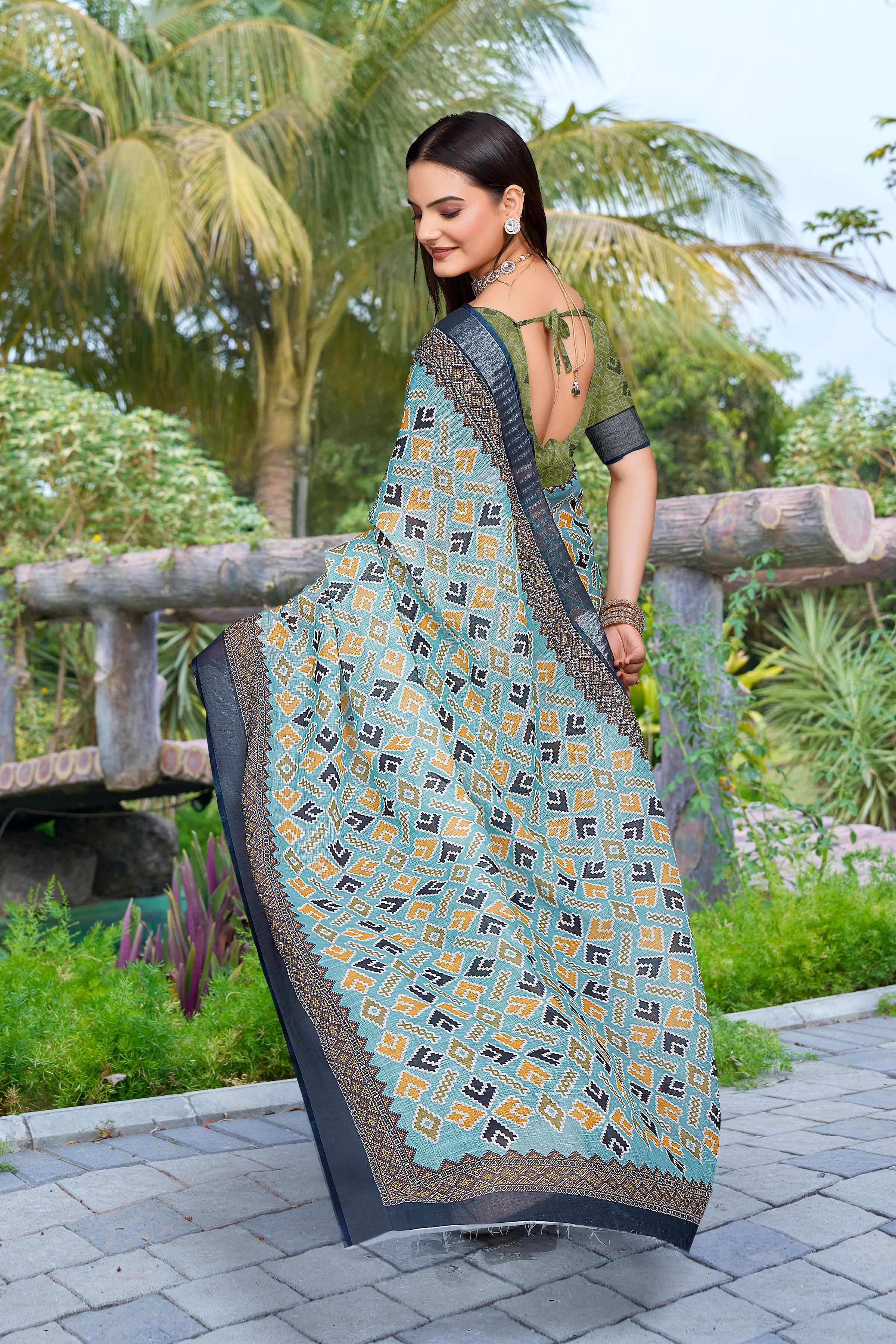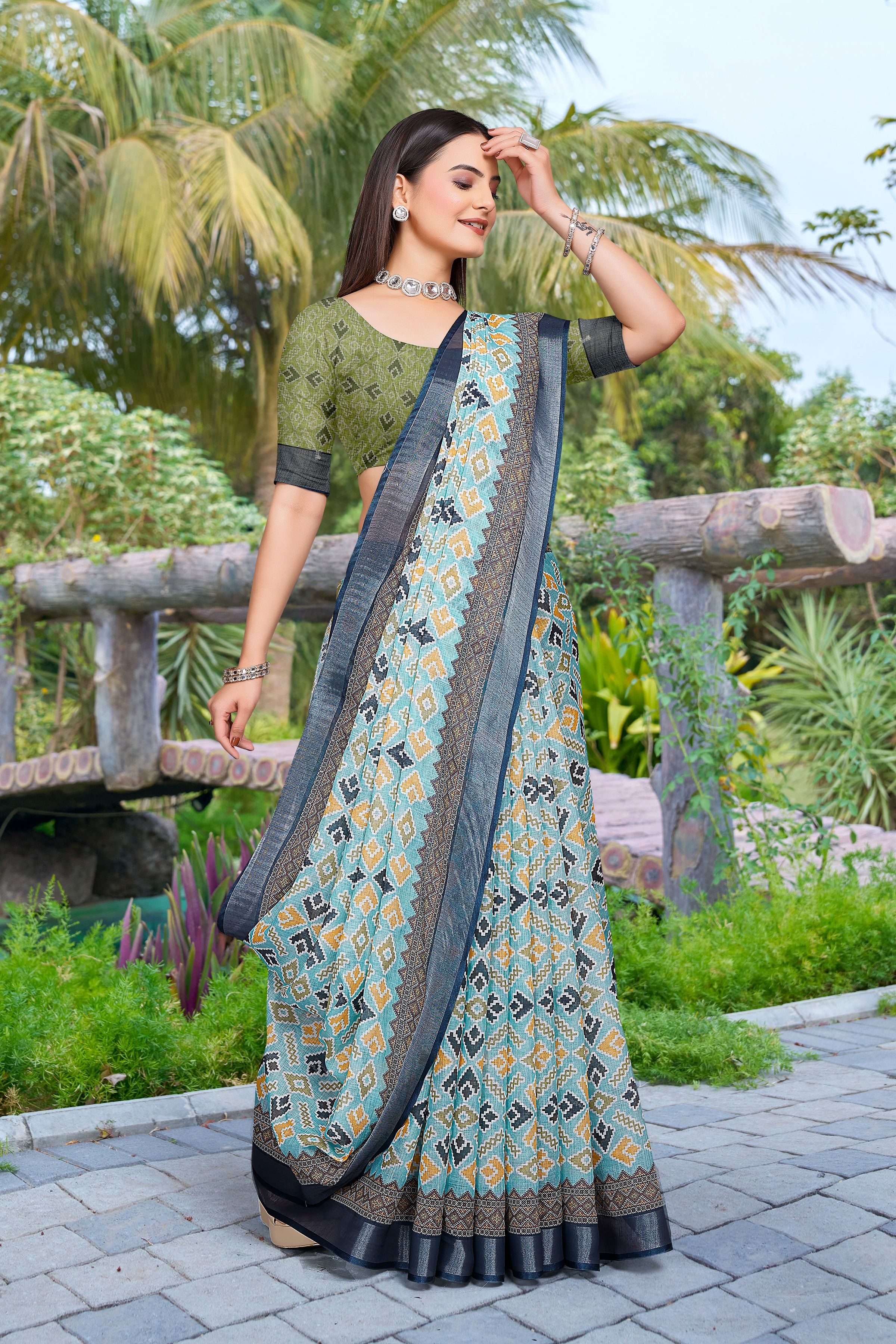 Look These Festive Saree in Fine Colored.These Saree Are Linen Cotton And Blouse is Fabricated On Linen Cotton Pair.Its Beautified With Woven Jari Border With Designer Digital Printed.