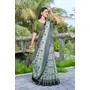 Green Color Linen Cotton Fabric Woven Border Designer Printed Saree