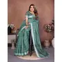 Green Color Linen Cotton Fabric Woven Checks Designer Trendy Ethnic Saree