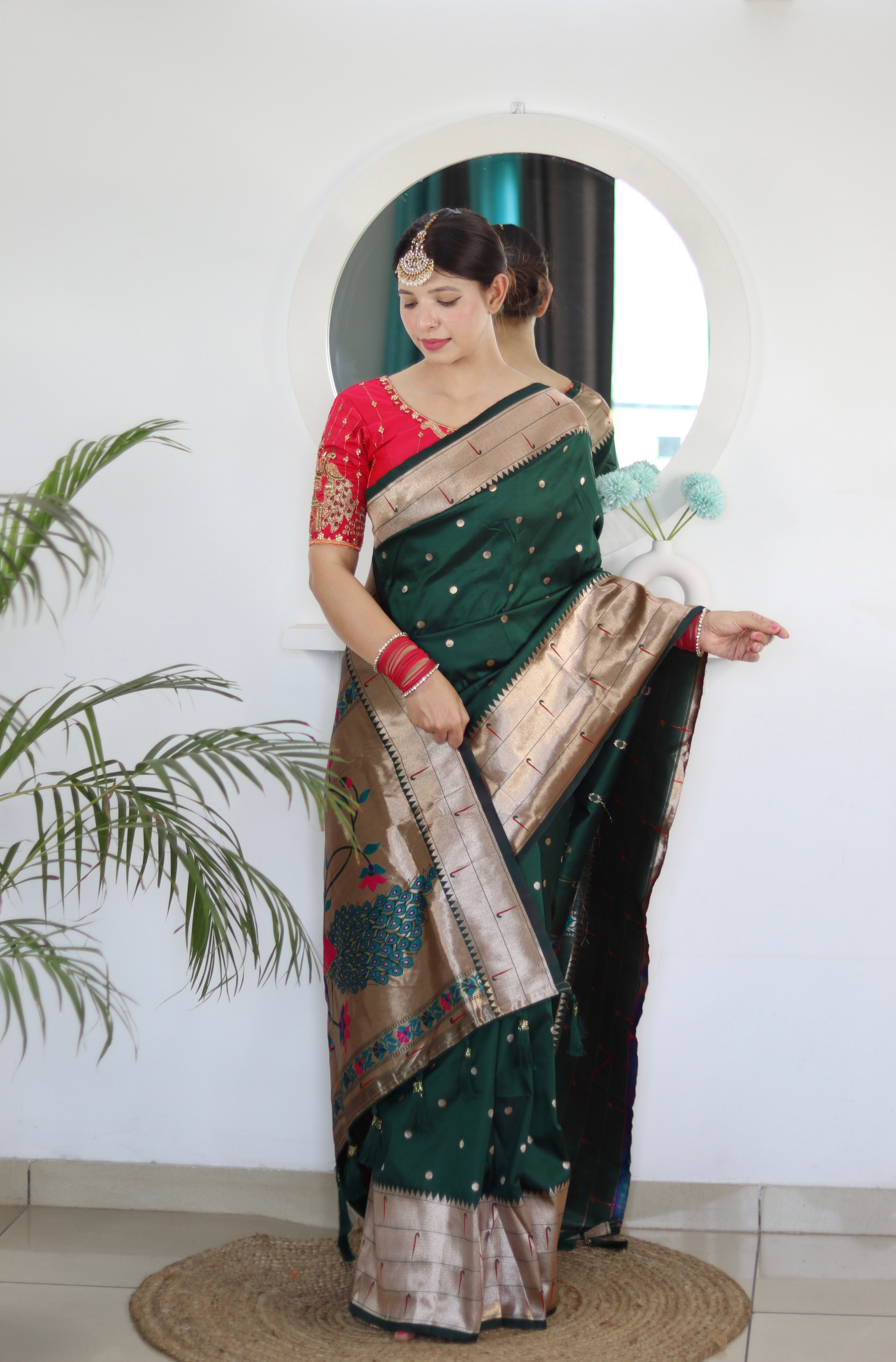 Green Color Paithani Silk Saree With Beautiful Festive Looks