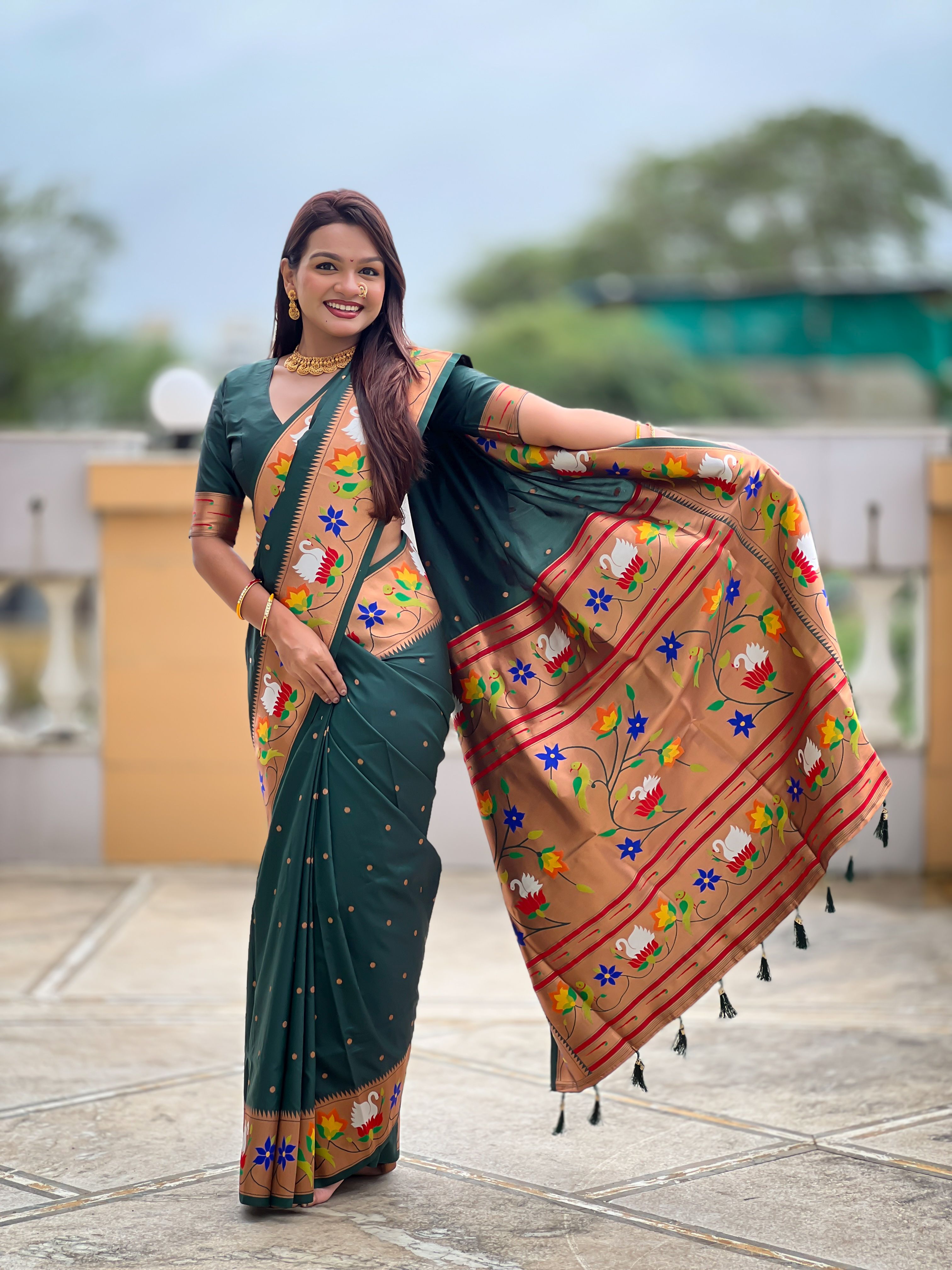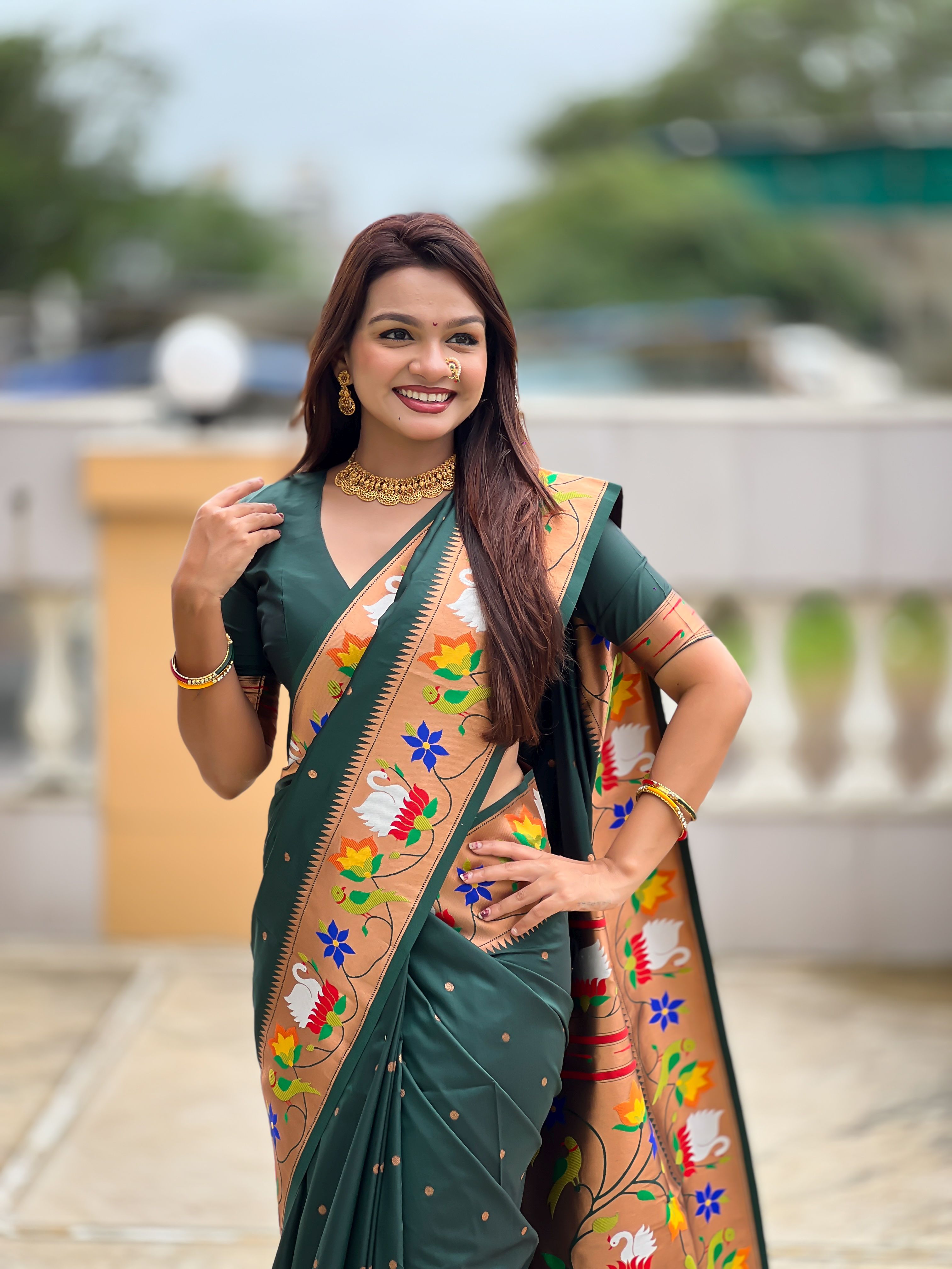 Green Color Paithani Silk Woven Meenakari Jacquard Designer Heavy Wedding Special Saree