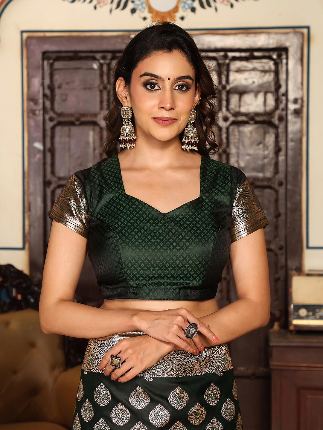 Green Color Silk Blend Woven Designer Ethnic Partywear Saree