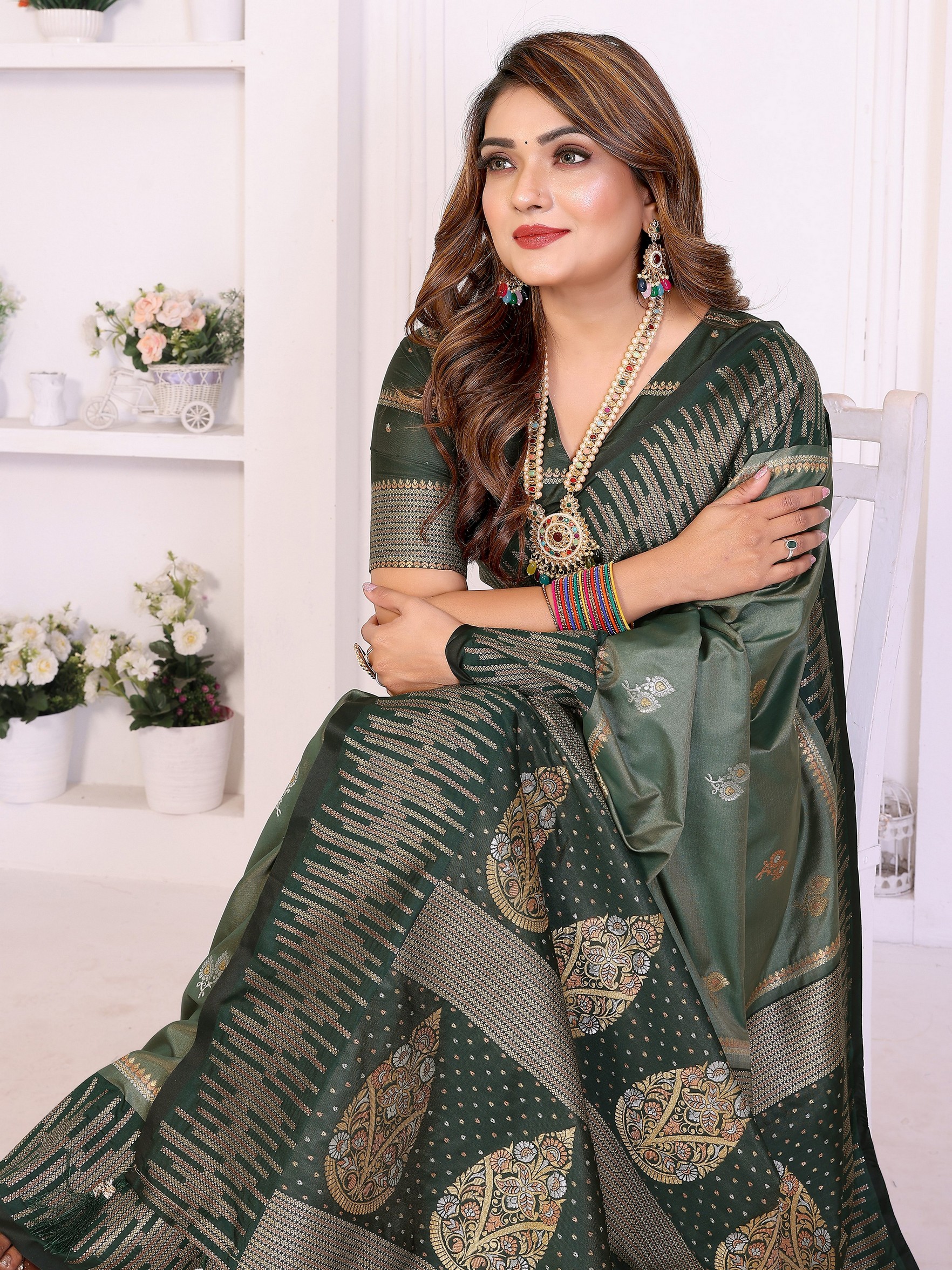 Green Color South Soft Silk Fabric Woven Rich Pallu Designer Ceremonial Saree