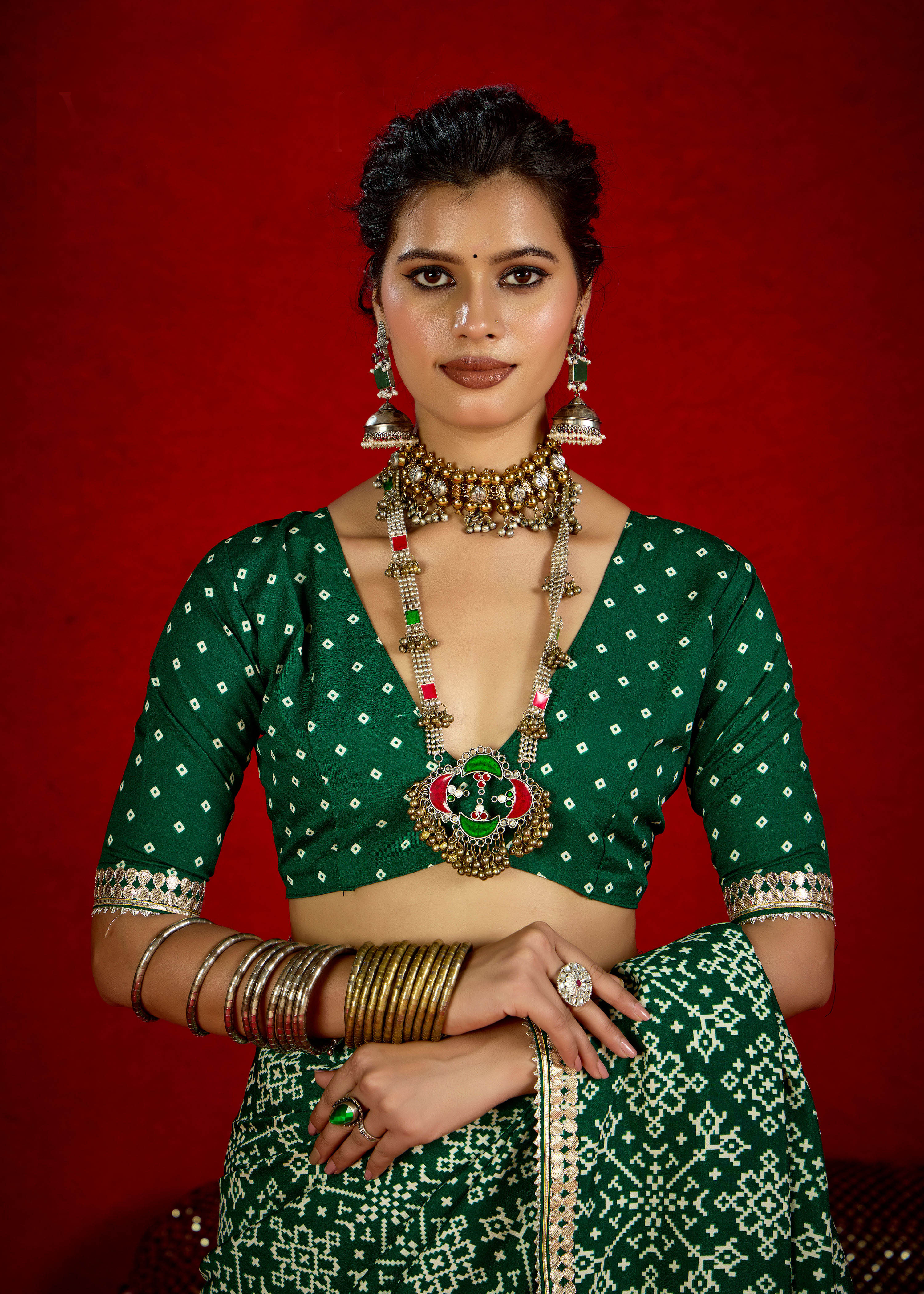 Green Color Velvet Tussar Silk Beautiful Partywear Saree
