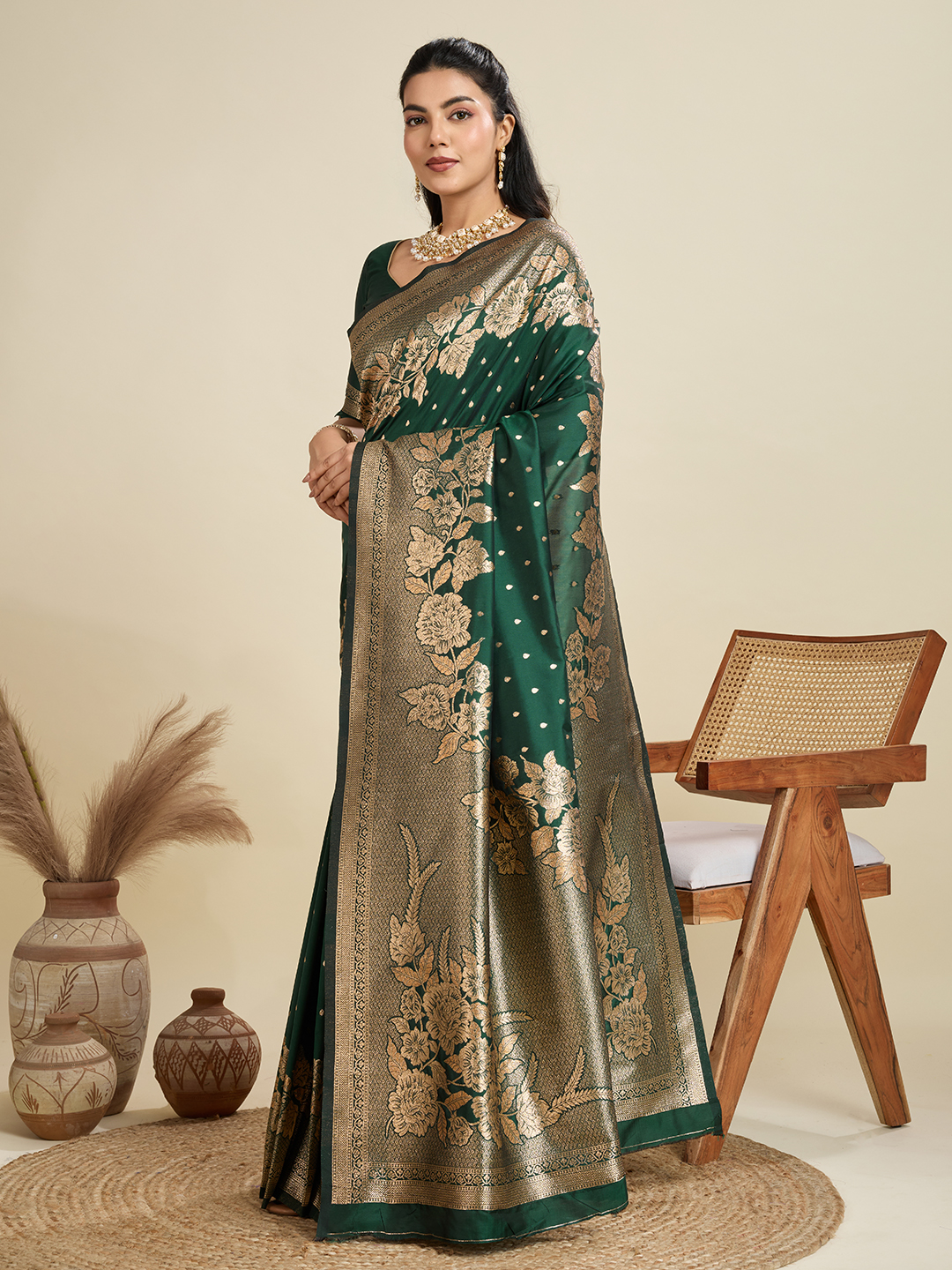Green Color Wevon Jari Rich Pallu Border Designer Kanjivaram Silk Saree