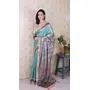 Green Color Woven Jari Border Designer Madhubani Digital Printed Ethnic Tussar Silk Saree