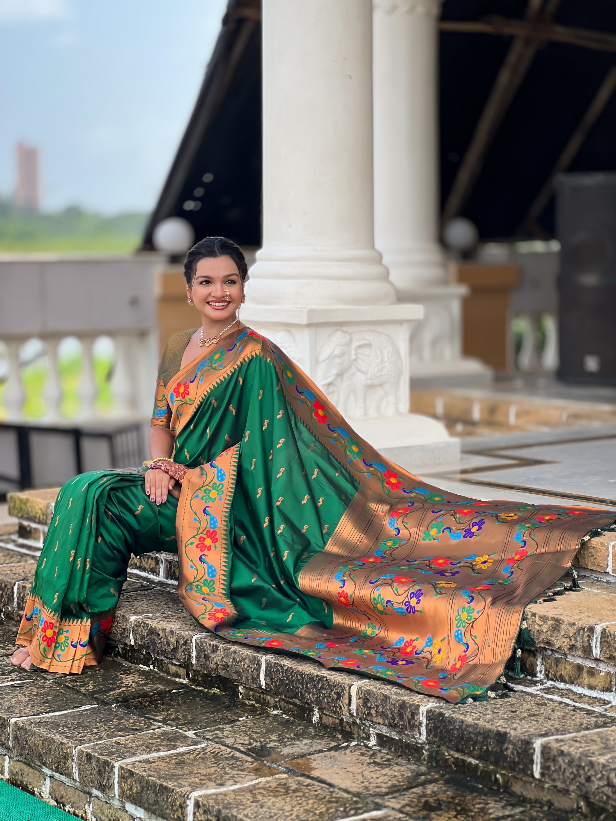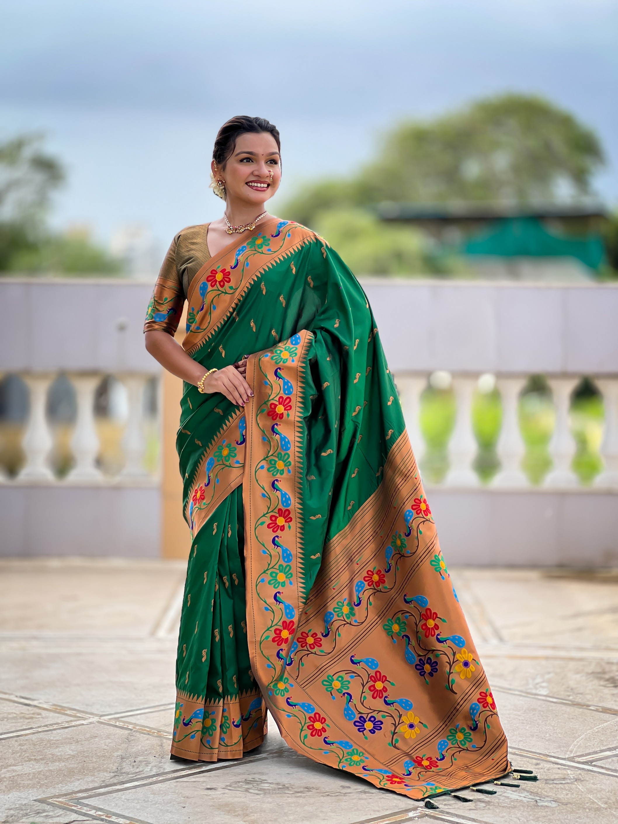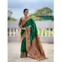 Green Color Woven Meenakari Jacquard Designer Paithani Silk Fabric Ethnic Saree