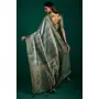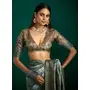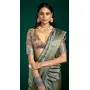 Green Grey Color Beautiful Tussar Silk Fabric Sophisticated Woven Designer Saree