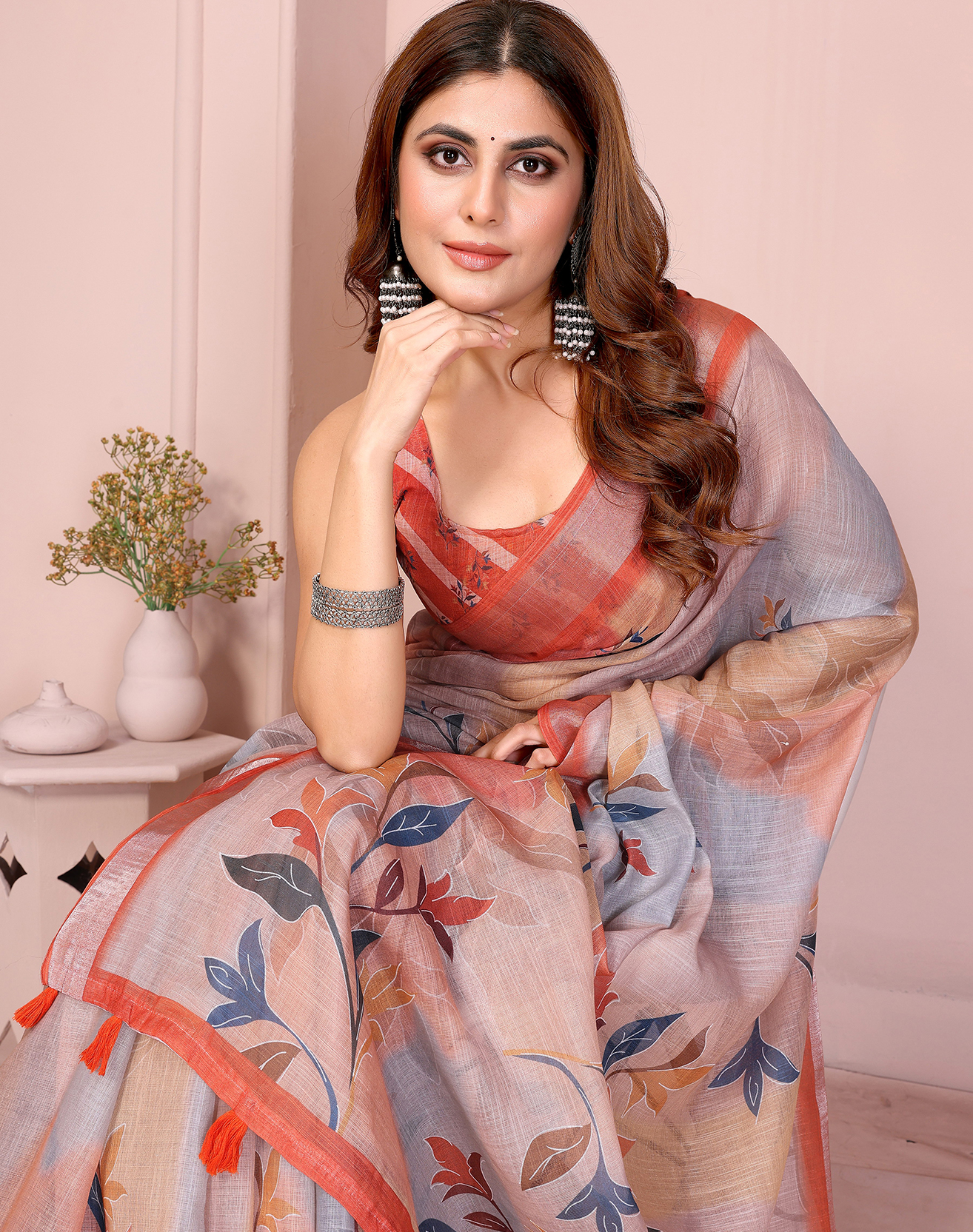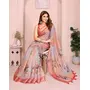 Grey Color Linen Cotton Fabric Designer Printed Formal Looks Sophisticated Saree
