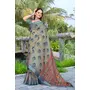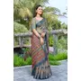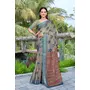 Grey Color Linen Cotton Fabric Woven Border Designer Printed Saree