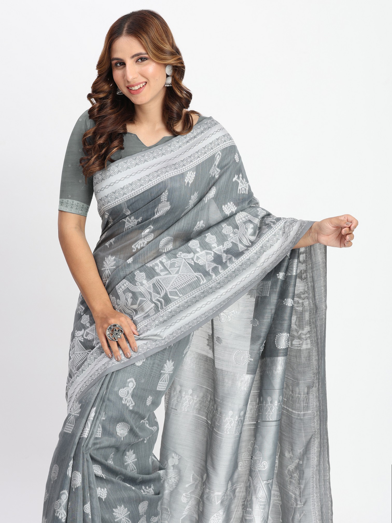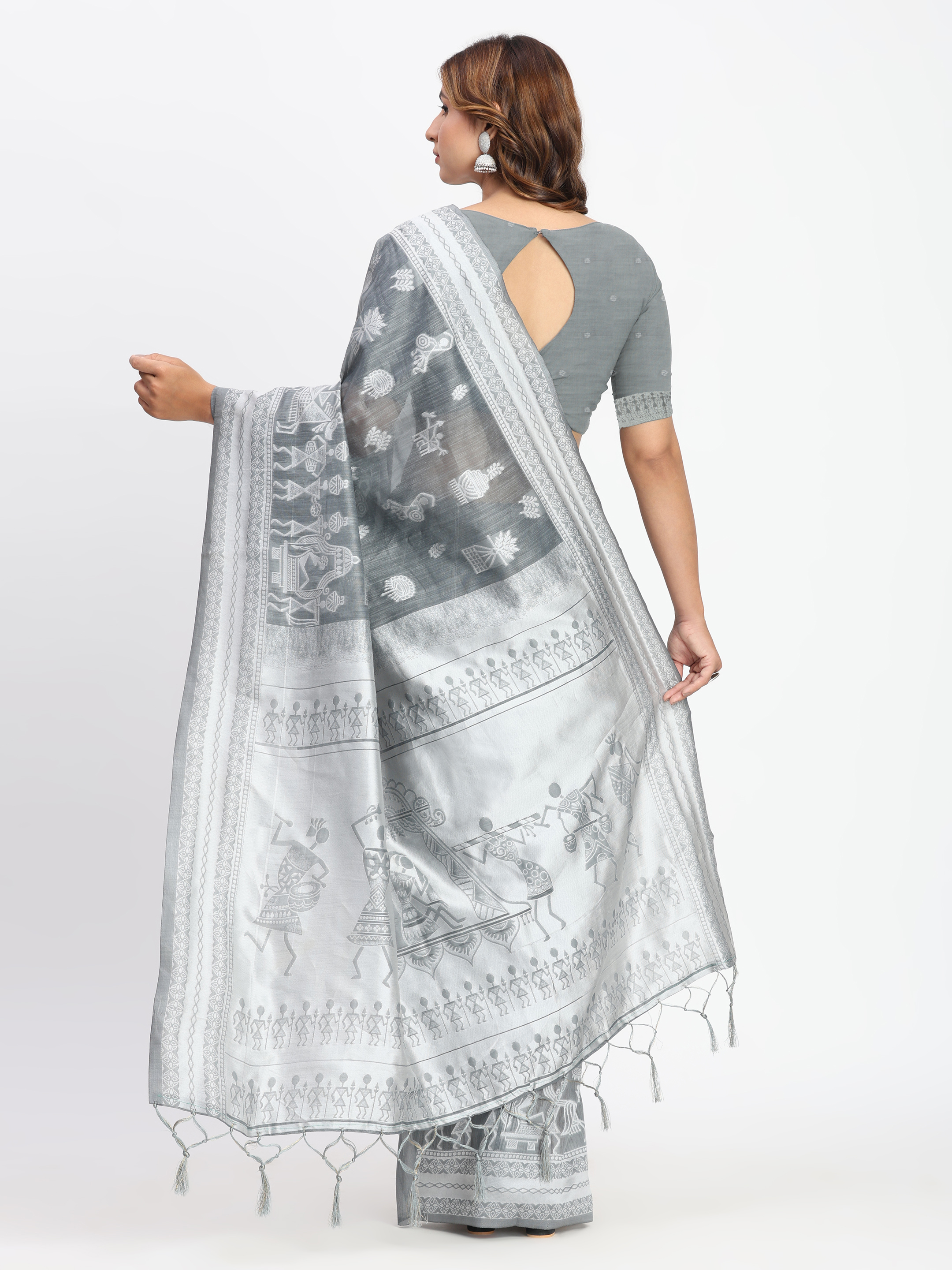 Grey Color Linen Cotton Woven Designer Graceful Ethnic Saree