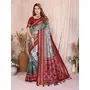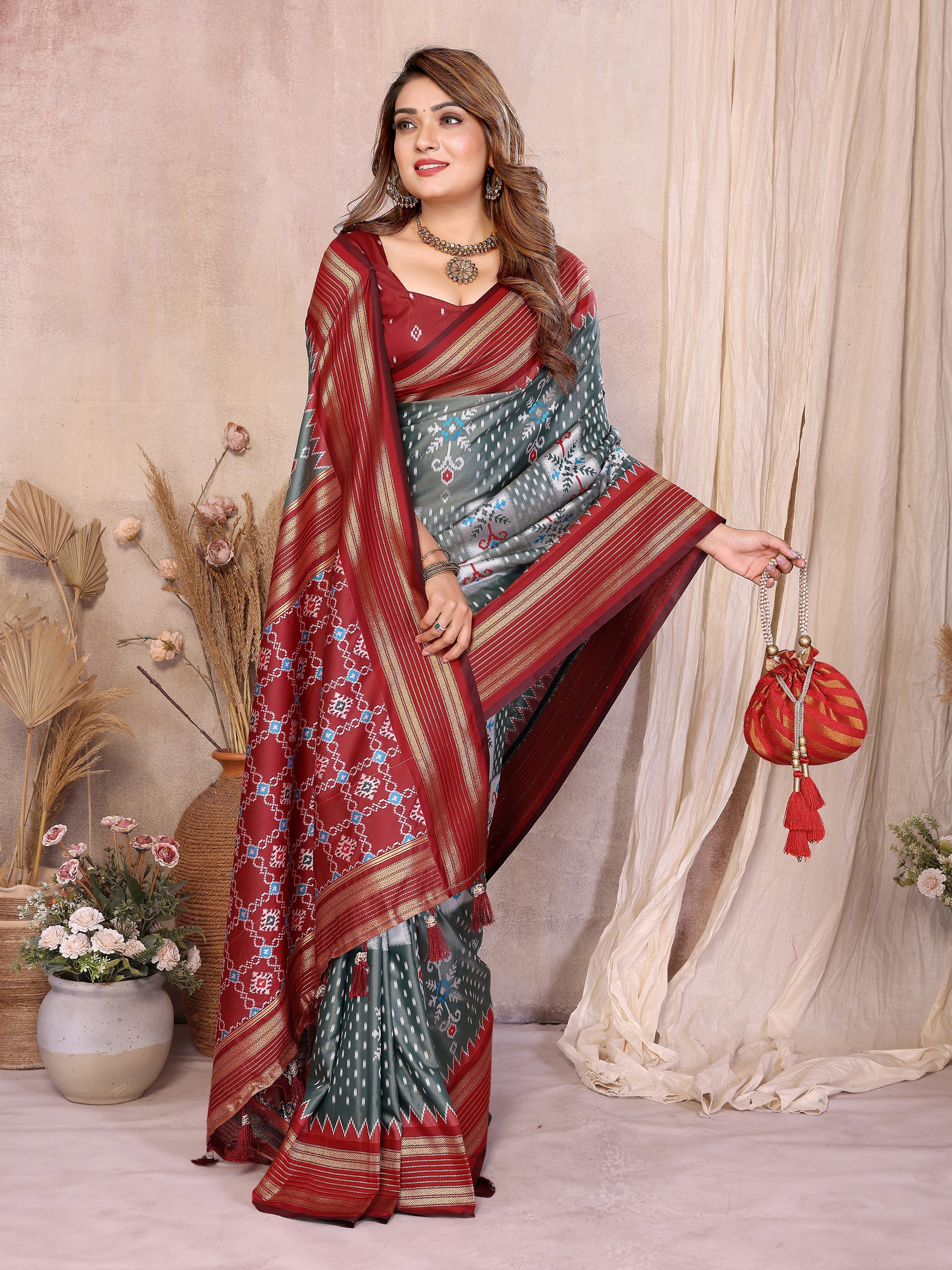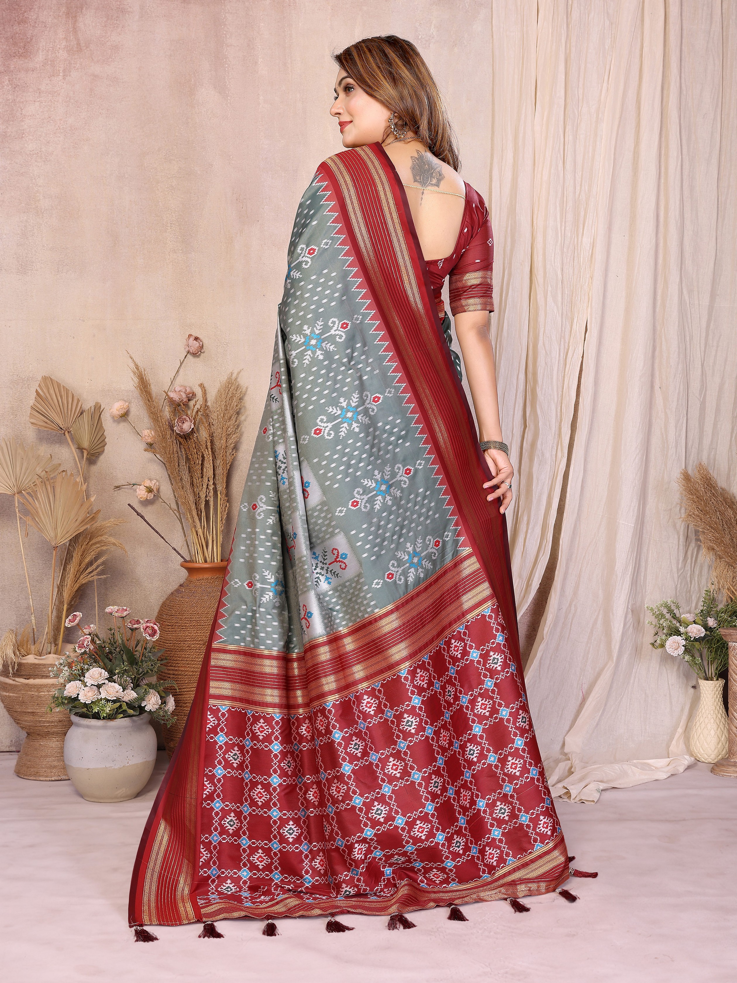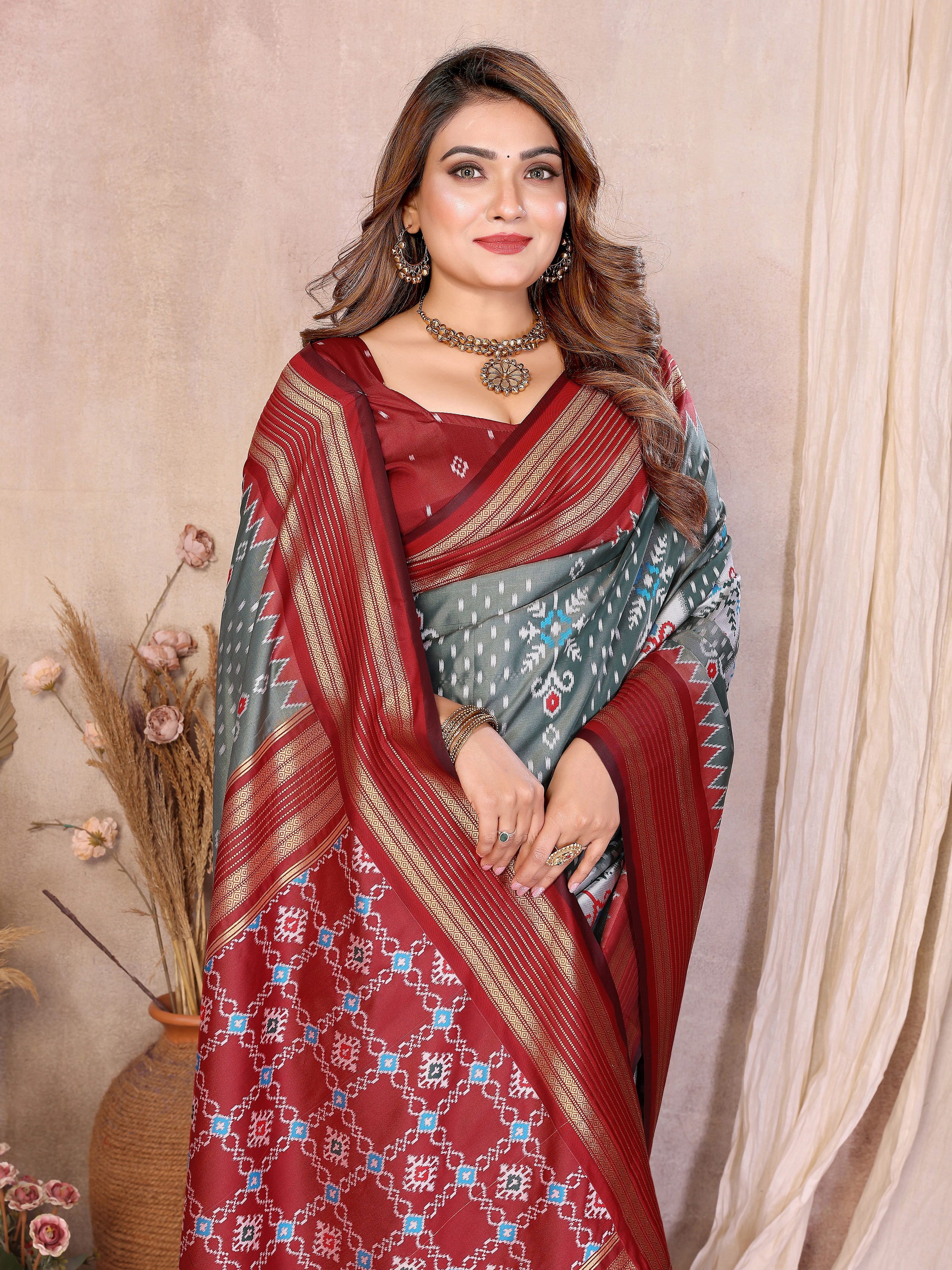 Grey Color Soft Silk Fabric Ikkat Weaving Designer Traditional Partywear Saree