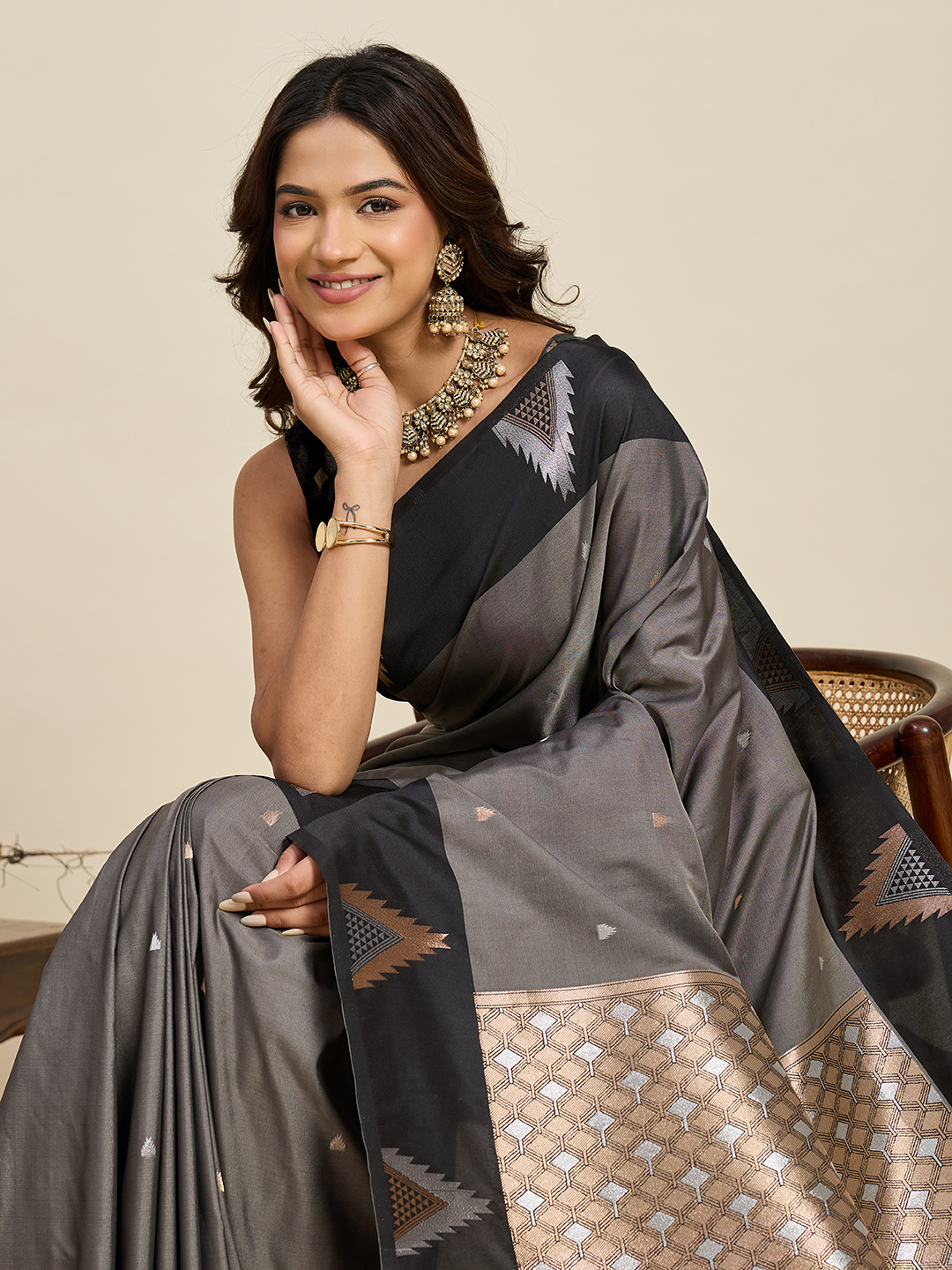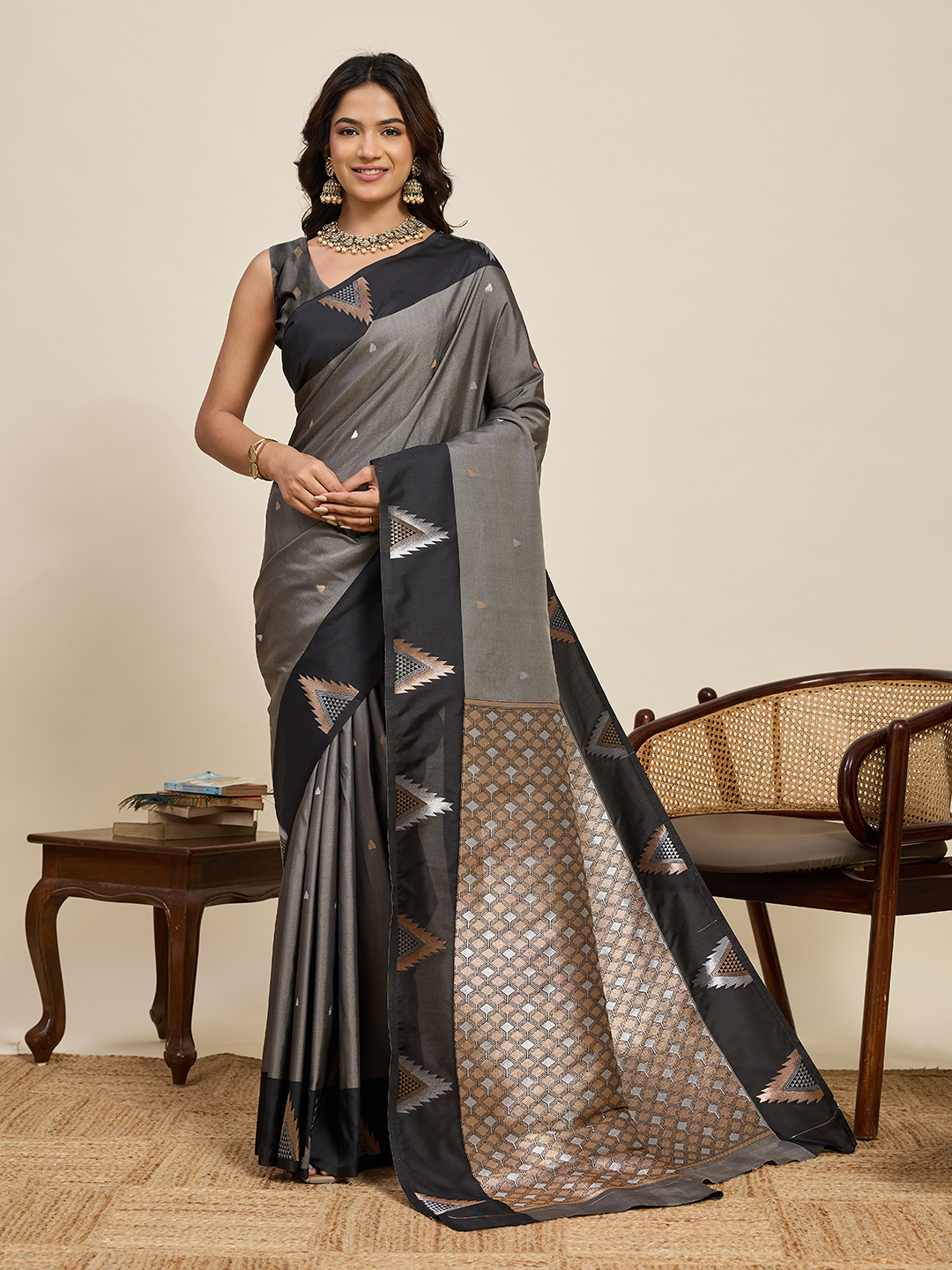 Grey Color Soft Silk Woven Jari Designer Saree