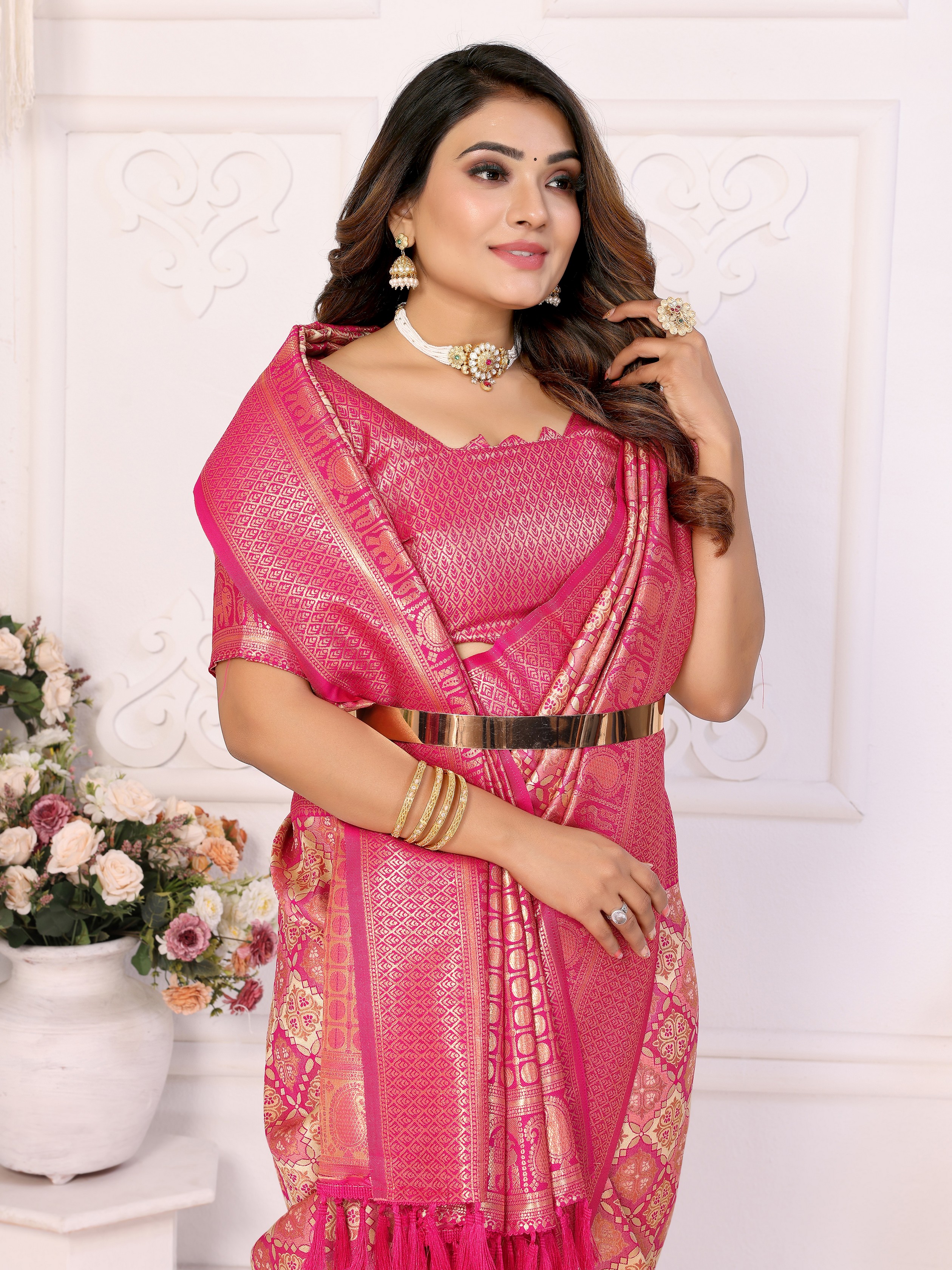 Heavy Zari Woven Designer Pink Color Banarasi Silk Saree