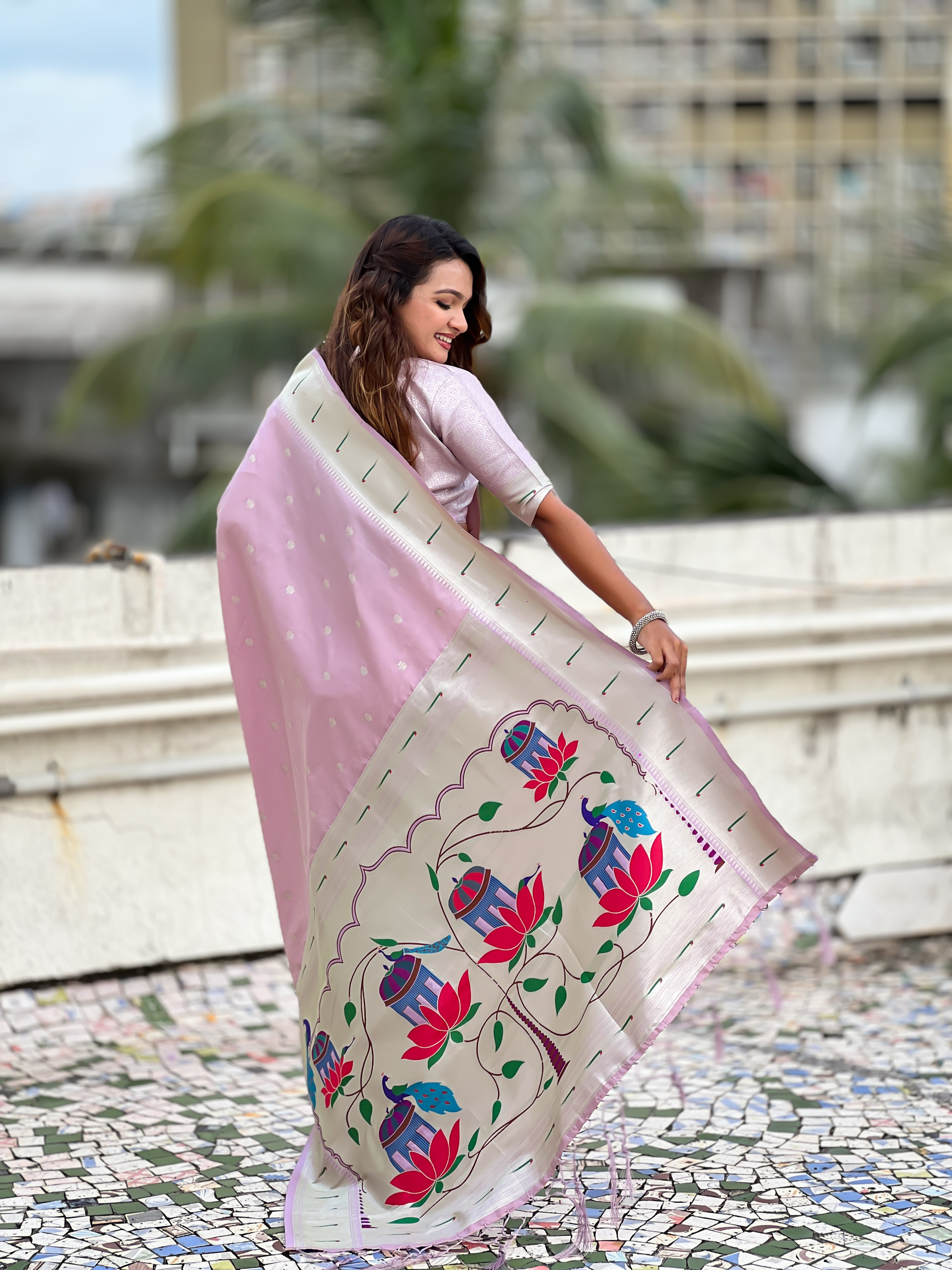 Lavender Color Paithani Silk Woven Designer Ceremonial Partywear Saree