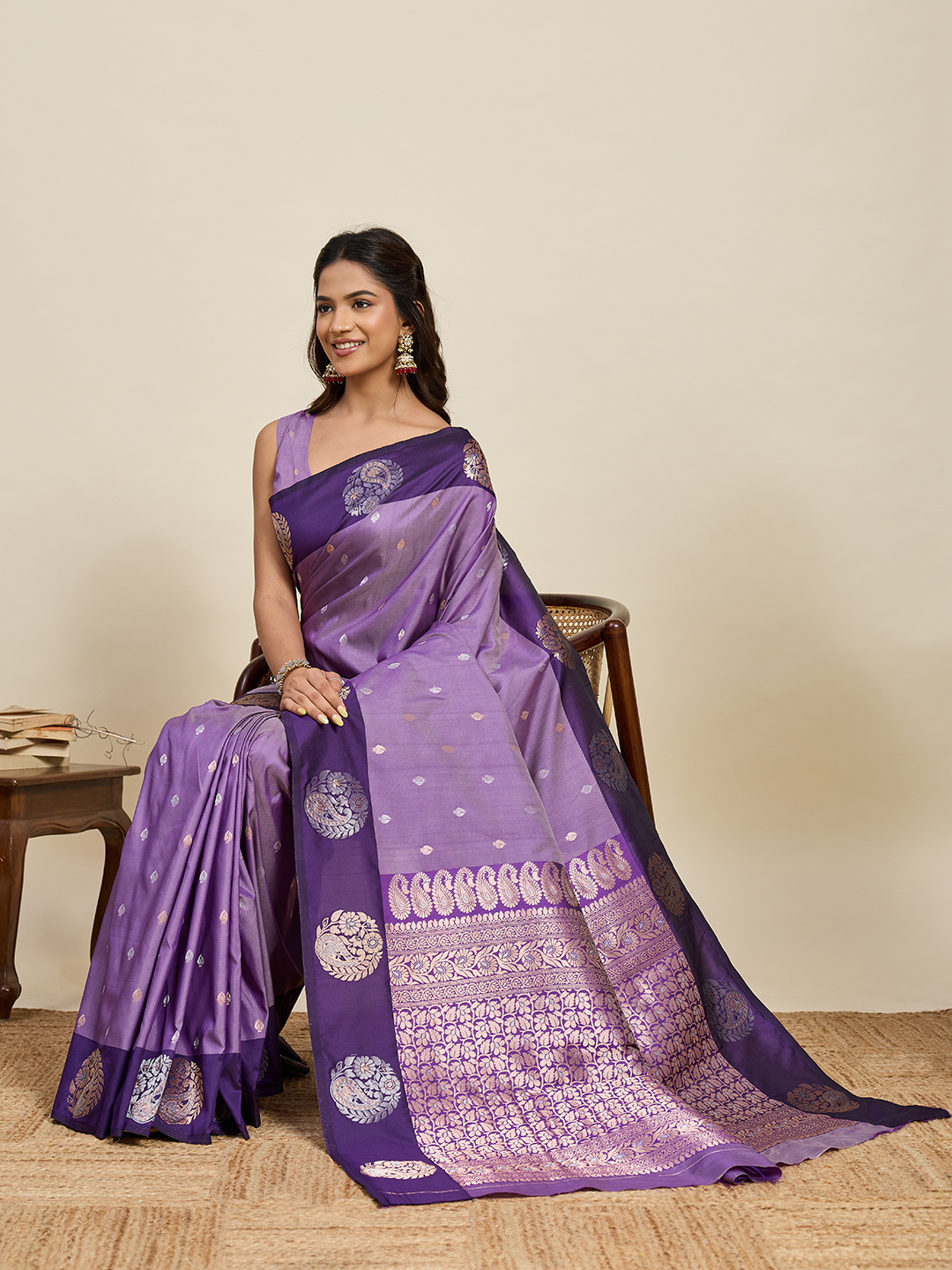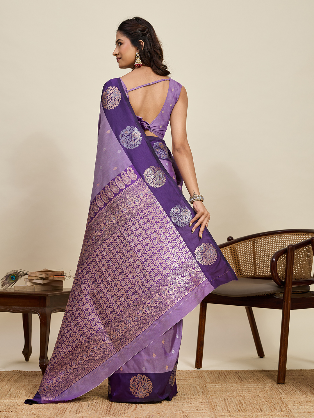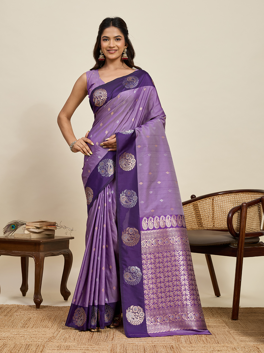 Lavender Color Soft Silk Fabric Woven Jari Designer Ceremonial Partywear Saree