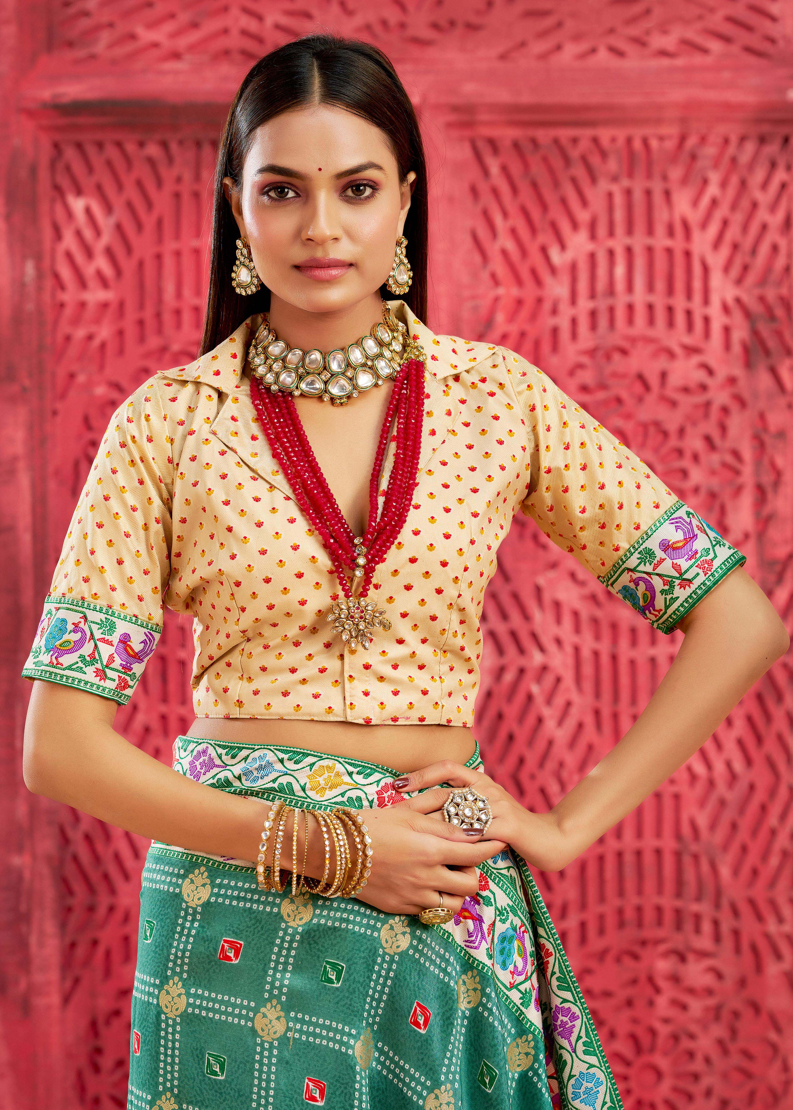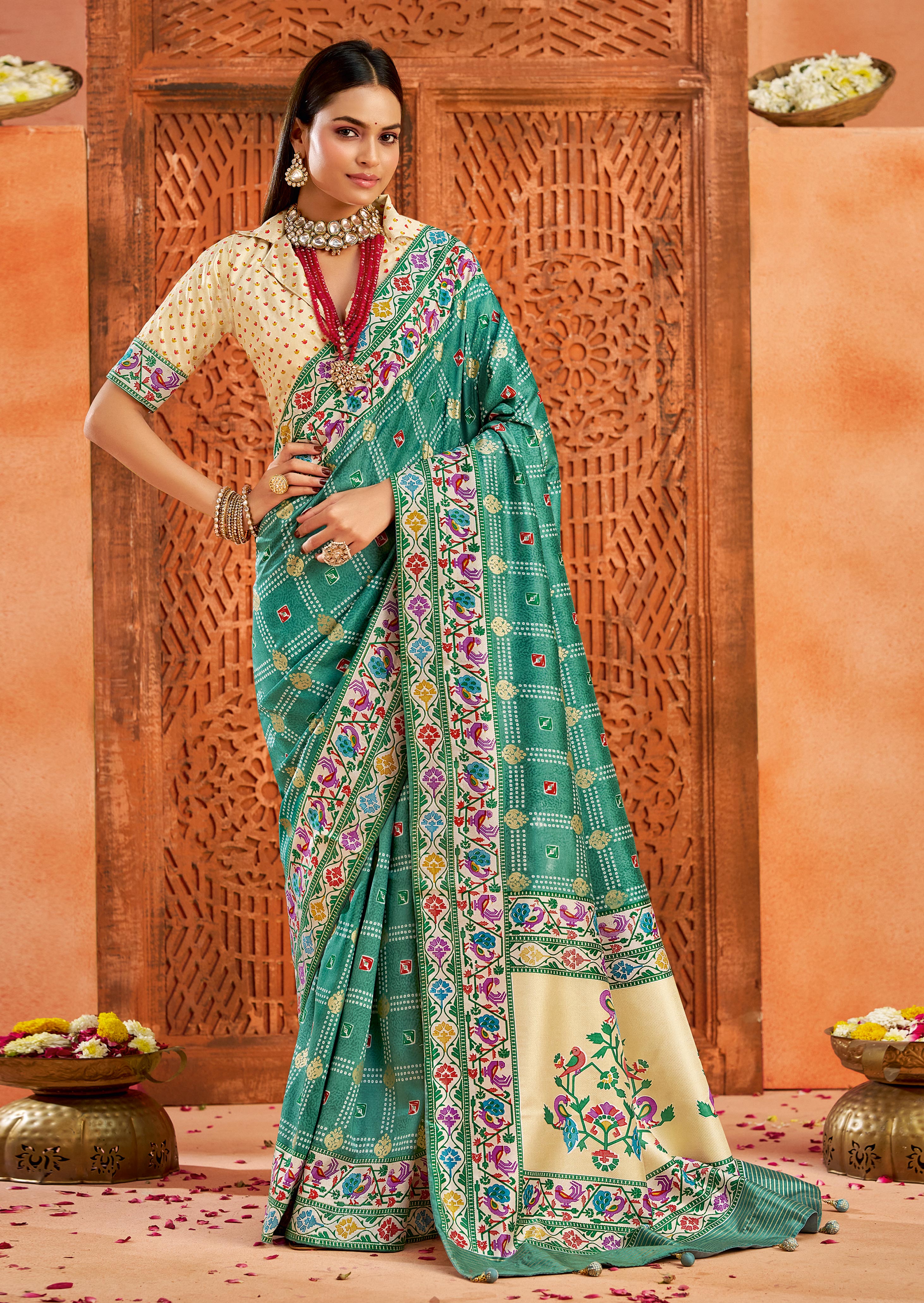 Light Firozi Color Velvet Tussar Silk Fabric Partywear Saree With Paithani Pallu And Traditional Ghatchola Print