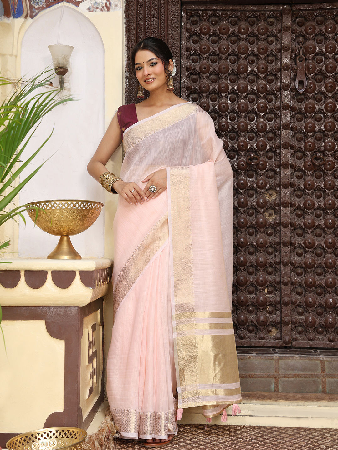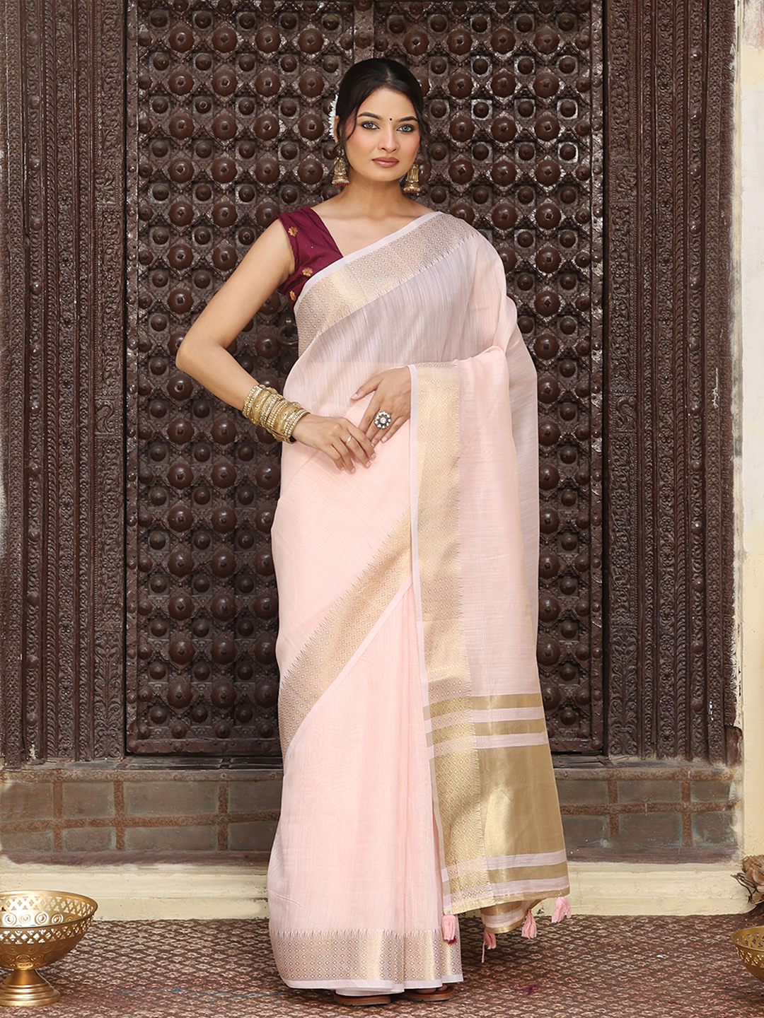 Light Pink Color Rich Ceremonial Looks Cotton Based Woven Designer Saree