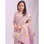 Light Pink Color Woven Zari Designer Ethnic Organza Fabric Saree