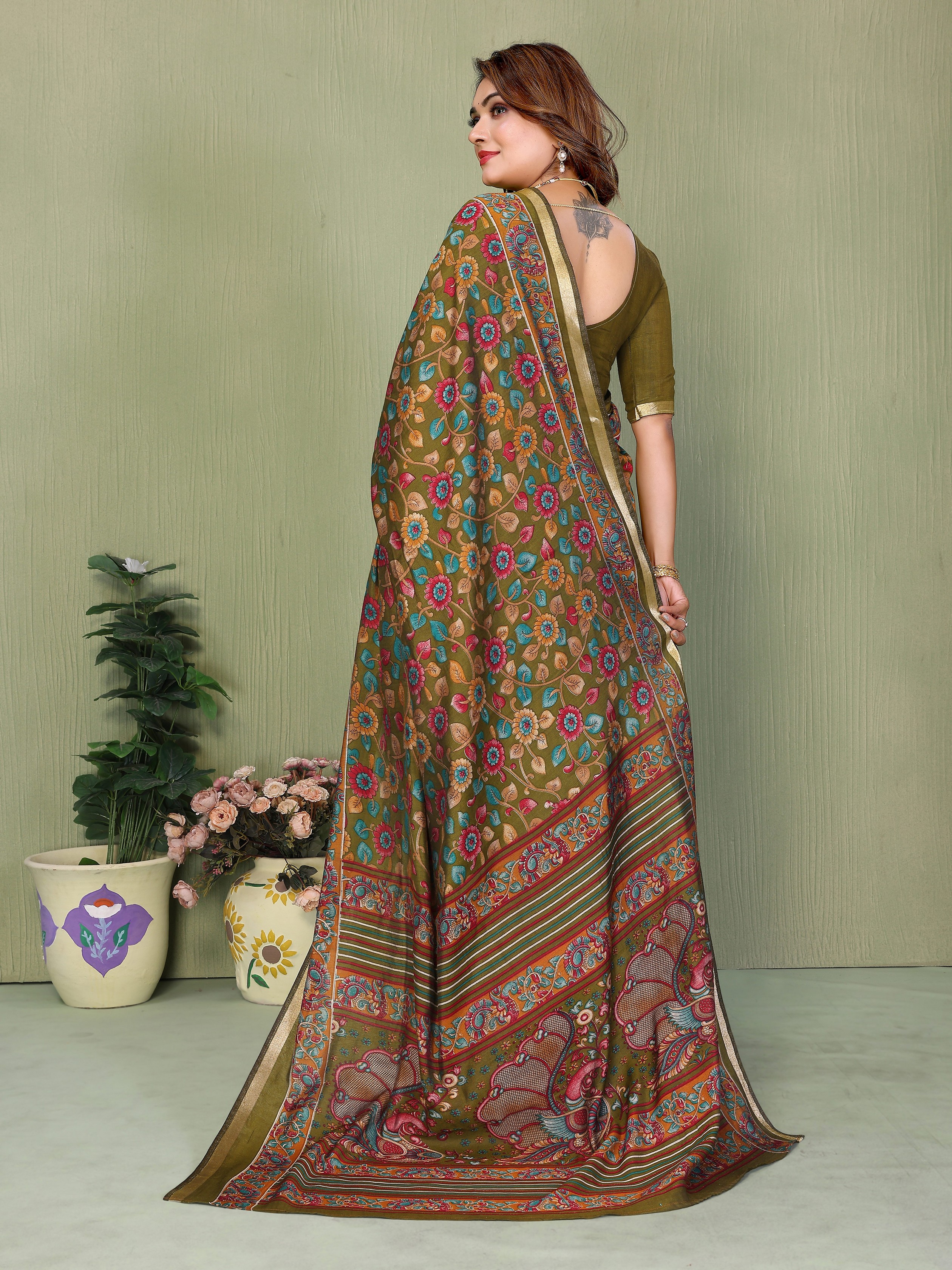 Mahendi Color Mul Cotton Fabric Designer Printed Partywear Saree