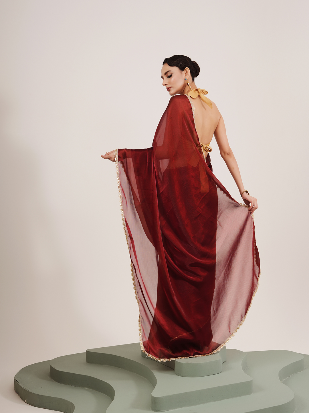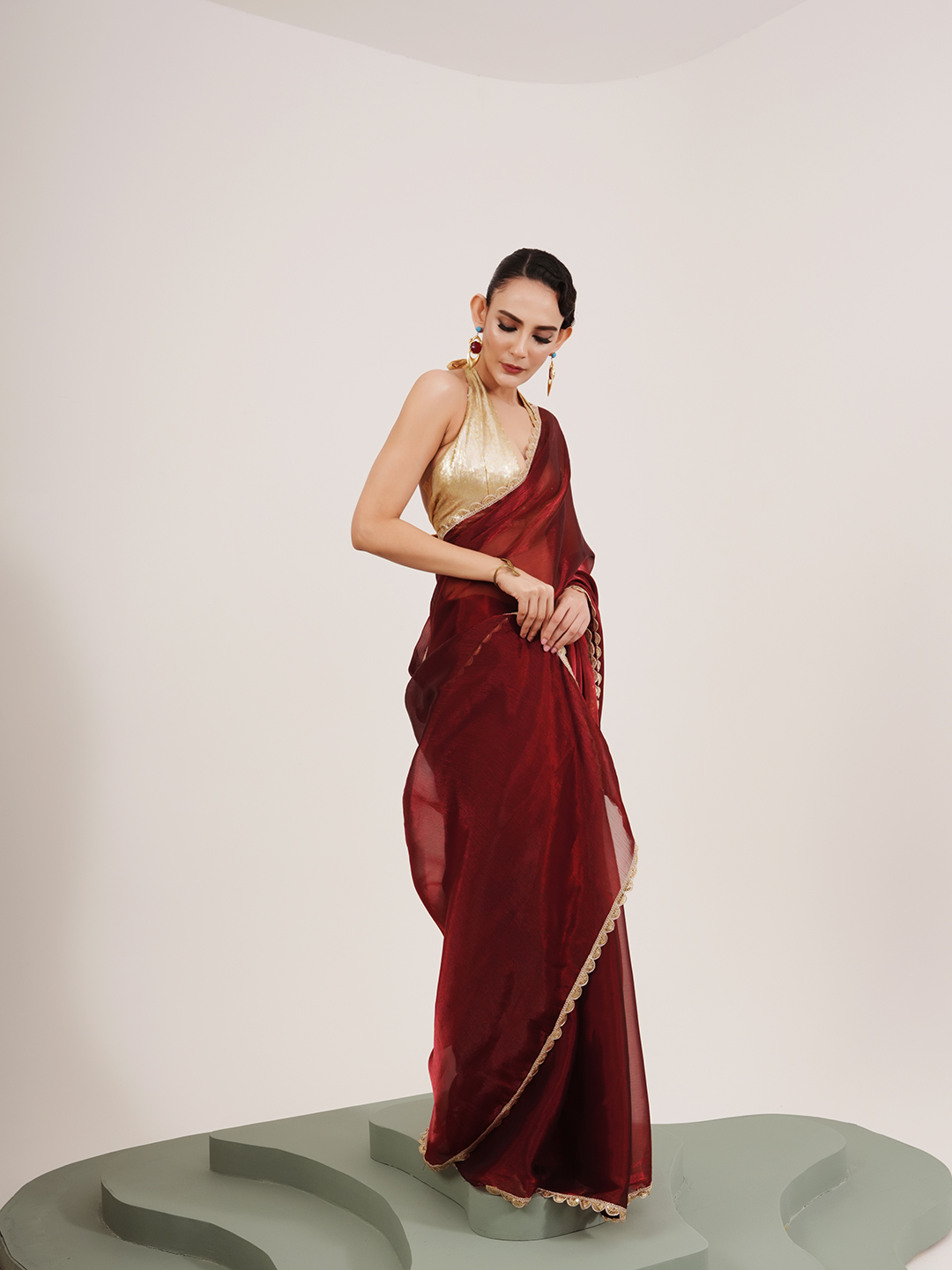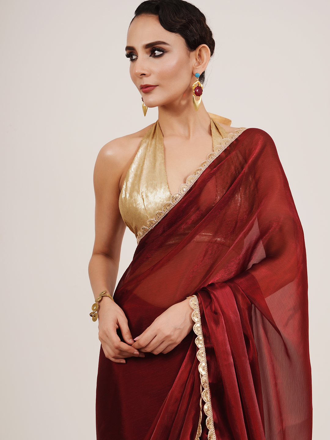 Maroon Color Beautiful Partywear Embellished Sequinned Organza Saree