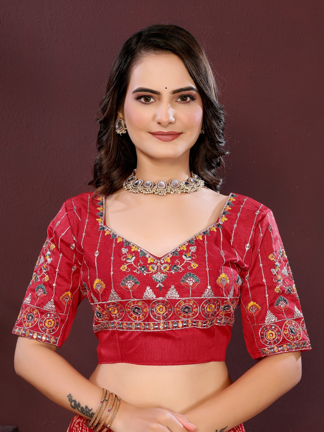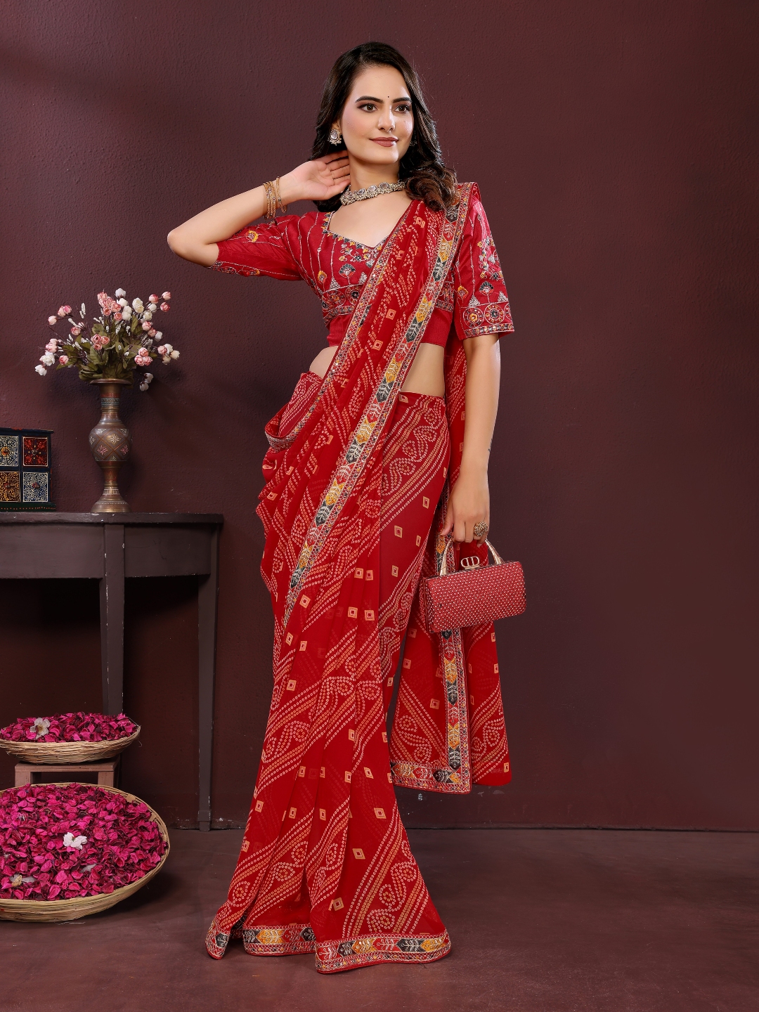 Garb These Party Wear Saree in Fine Colored.These Saree Are Georgette Are Georgette And Blouse is Art Silk Fabricated.Its Beautified With Designer Bandhani Printed With Embroidery Work Lace Border And Blouse.